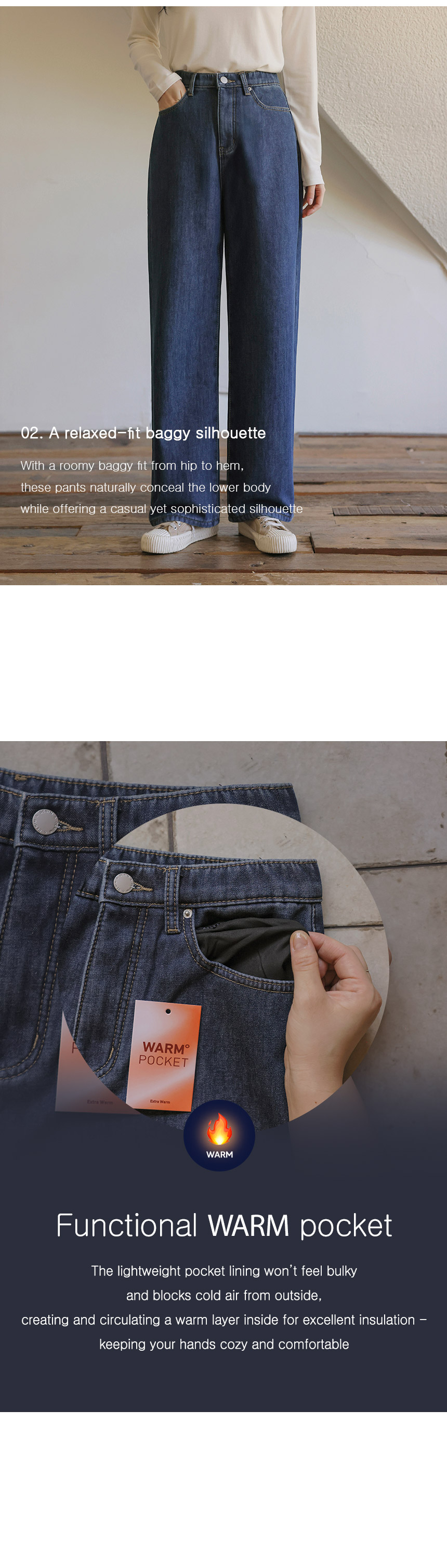 These jeans feature a relaxed, loose fit for casual comfort. With a thick, soft fleece lining, they keep you cozy and warm - like carrying a hot pack with you!