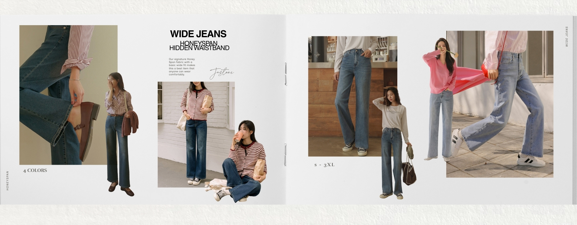 S, M, L, XL, 2XL These wide jeans feature diagonal seams on the side for a trendy look! Available in three lengths of Short, Basic, and Long, you can choose the one that best suits your body type.