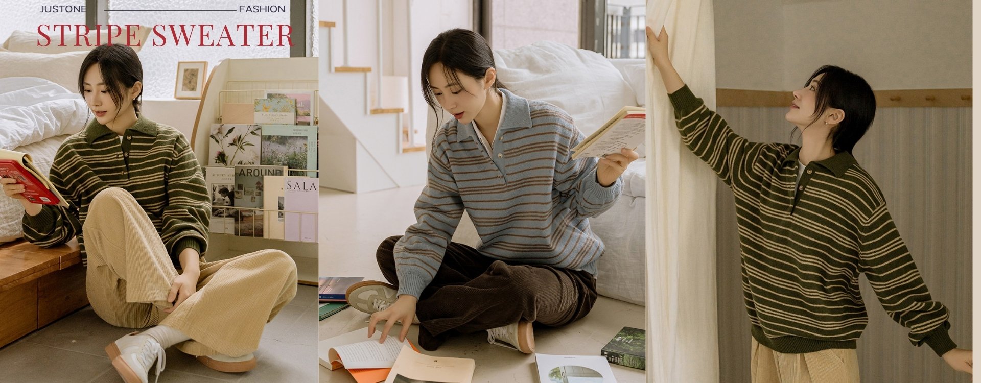 FREE A simple and neat striped shirt, JUSTONE's signature item! It is great for styling in various ways, either alone or as an inner layer. Wear it neatly without worries, as it is wrinkle-free!