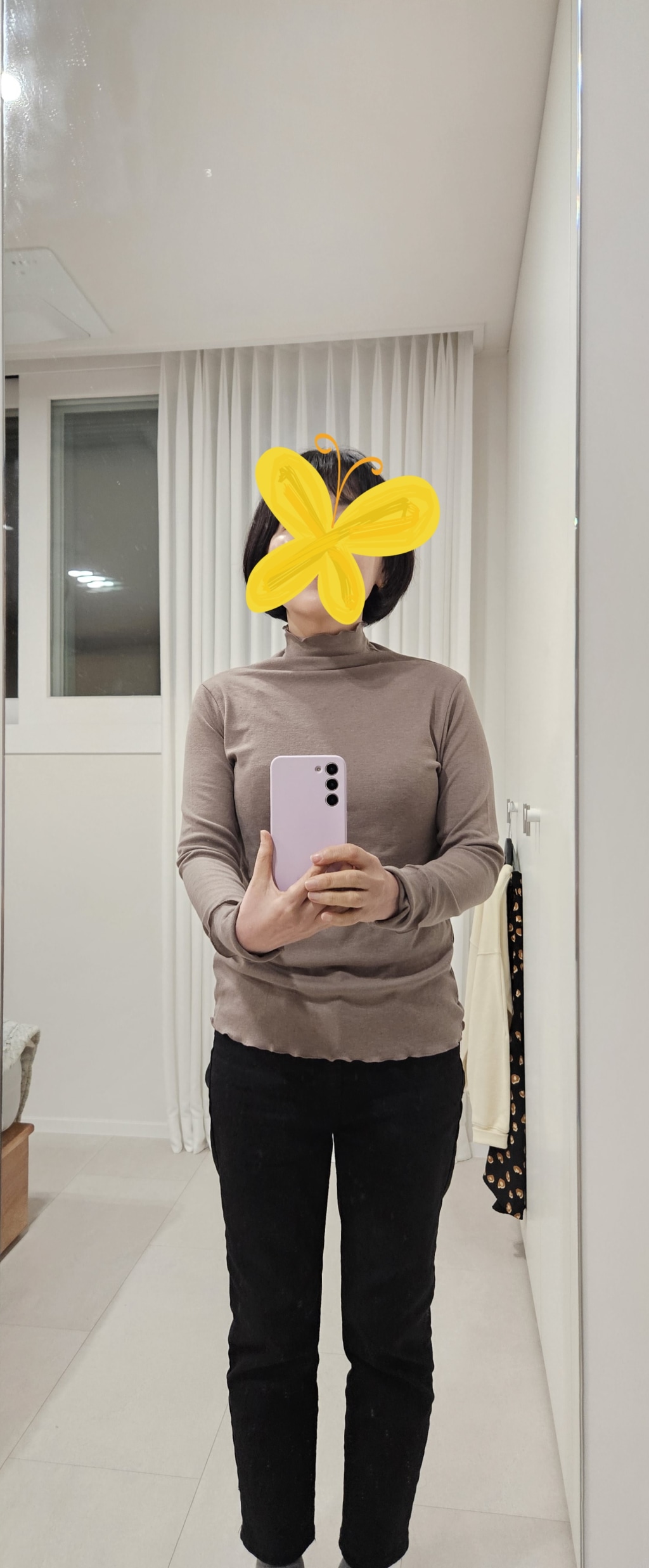 The color is just as in the pics It is a light brown color It is soft and not too tight on the neck The sleeves are a bit long but I recommend this design since it's not restricting |