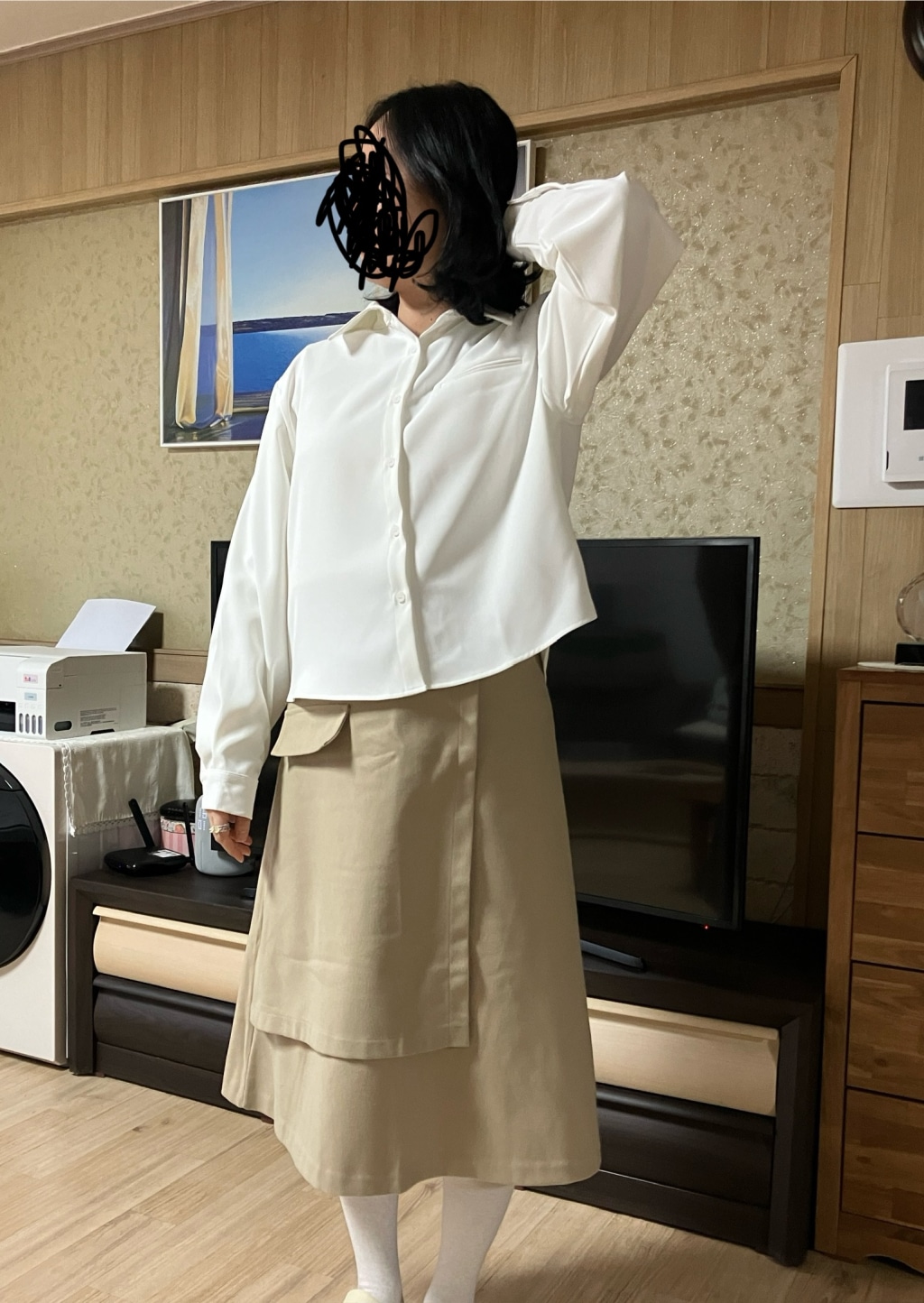 - Item name: 8OA0625AA_Latte Semi-Crop Lip Pocket Blouse