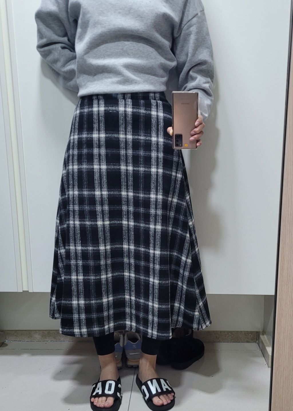 - Item name: 6DA29207MM_Clover checkered fleece flared skirt
