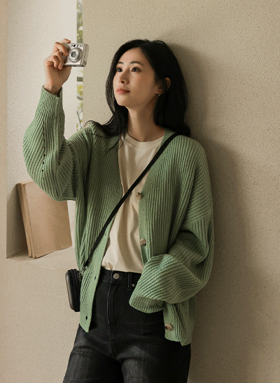 5DA30369AY_Loose Fit Scotch Weave Knit Cardigan