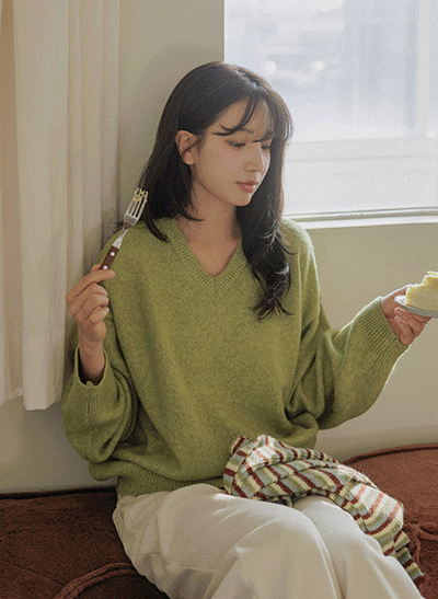 5DA32204HN_Thick Wool V-necked Basic Knitwear