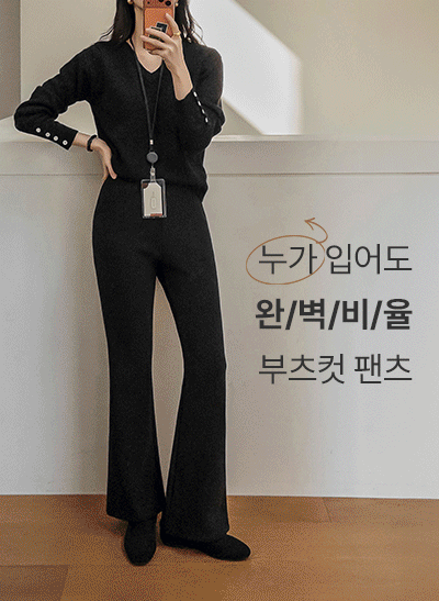 4DA32393JJ_Slim-line All-elastic Fleece-lined Bootcut Pants (Short/Long)