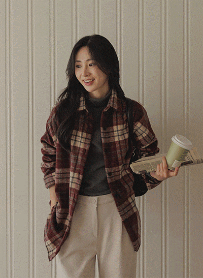5DA32413HN_Mauve Cozy Box-fit Checkered Shirt