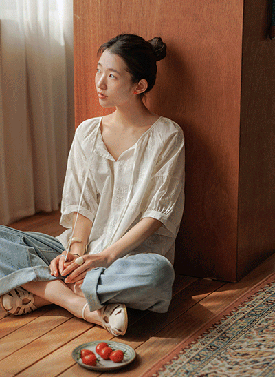 Heart-Fluttering Eyelet Embroidered Cotton Blouse