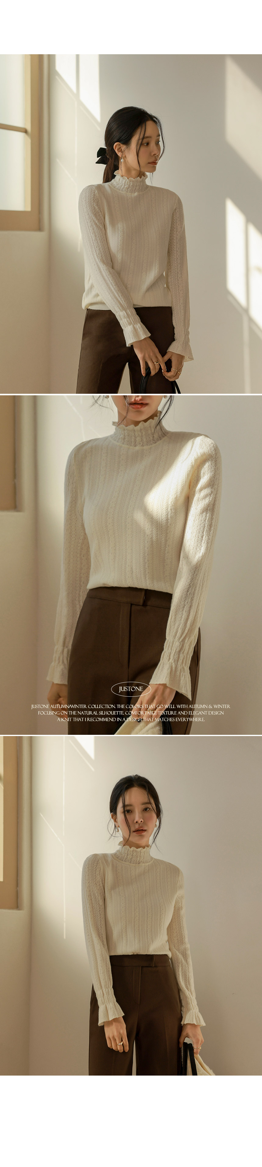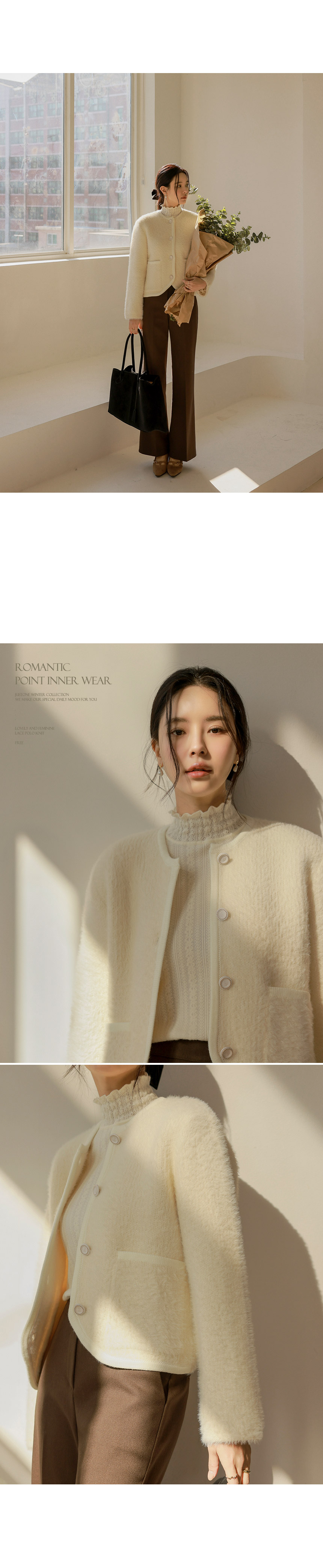 Romantic inner wear that is easy to wear~ Comfy with flexible banding around the turtleneck and sleeves! It is a moist and fluffy viscose-blended knitwear that does not irritate the skin and is comfortable!