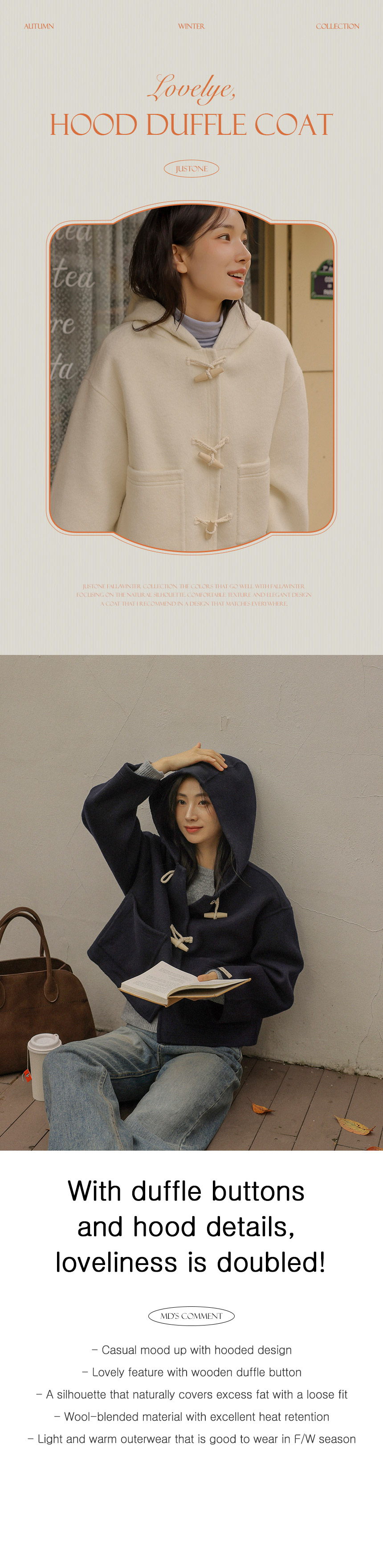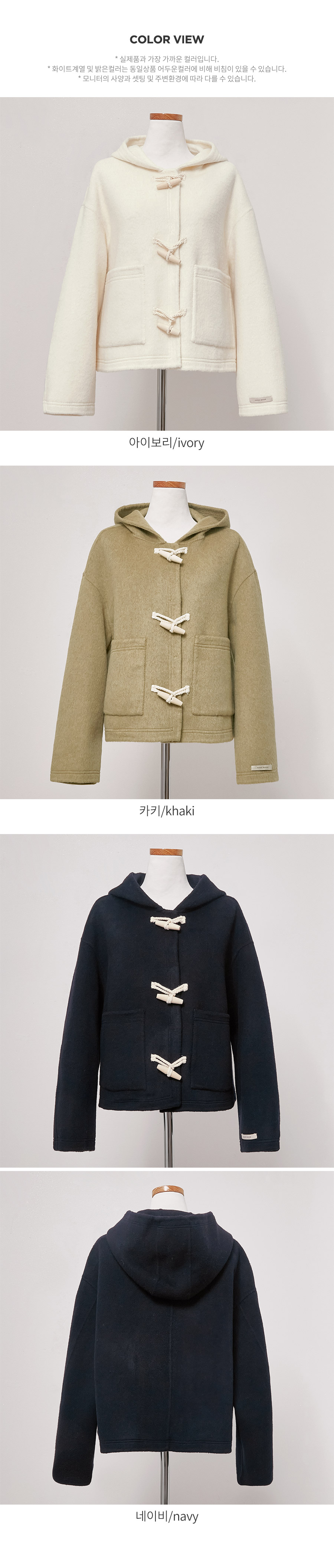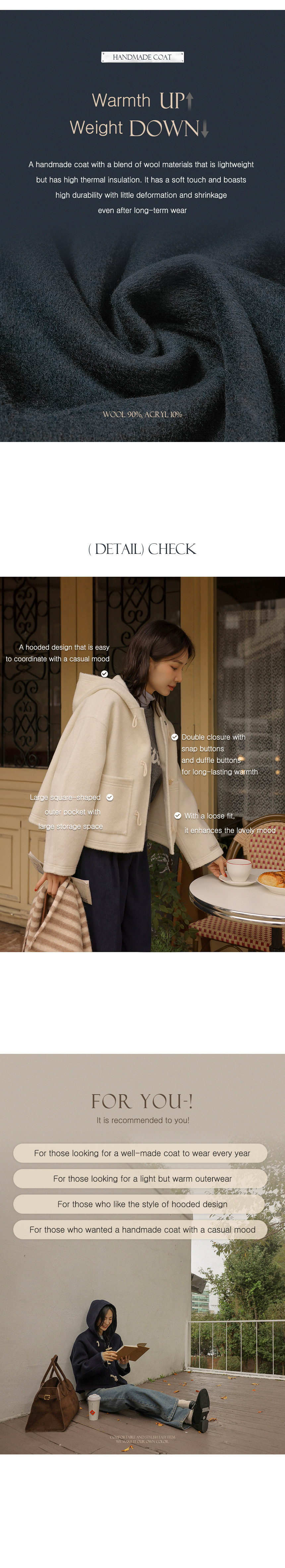 This handmade coat features a hooded design and duffle button details for a casual touch. Blended of wool, this coat provides excellent heat retention!