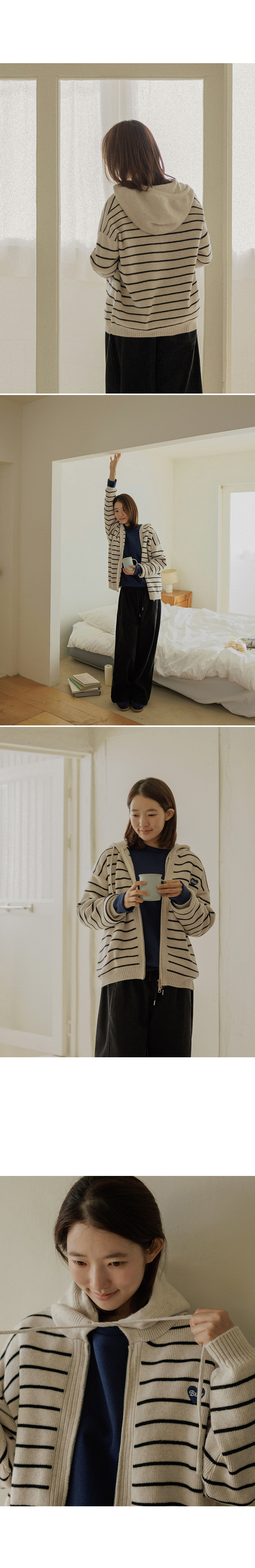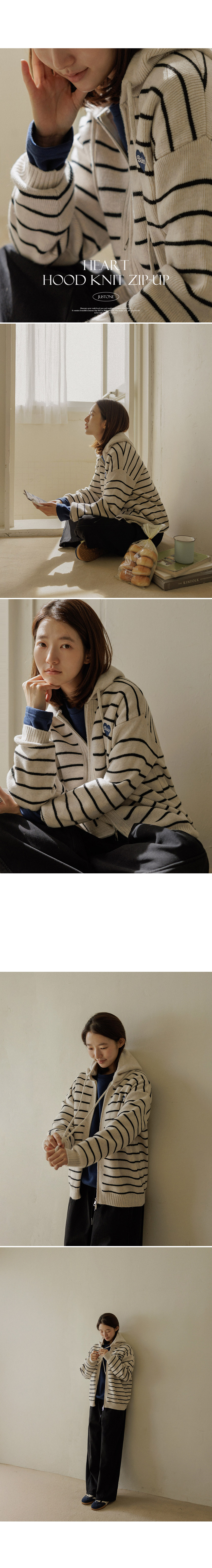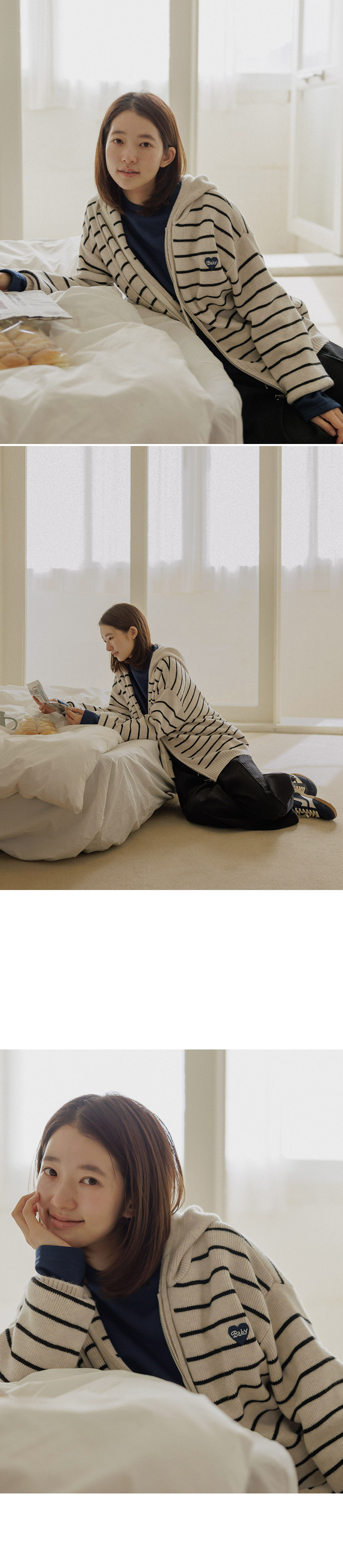 This hooded knit zip-up features a cute heart patch embroidery and a relaxed, comfortable fit. It’s available in two patterns of a simple solid color and a cheerful stripe, so you can choose the style that best suits your taste!