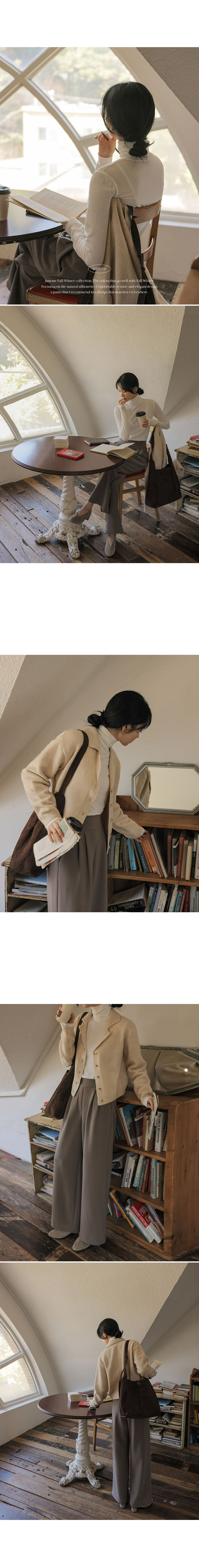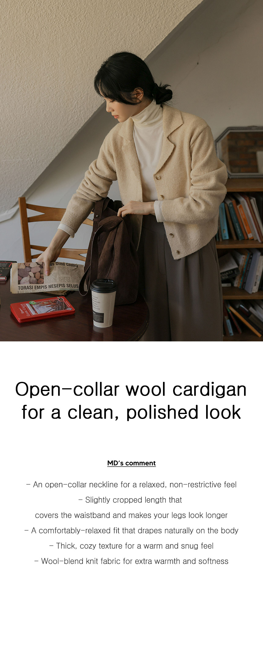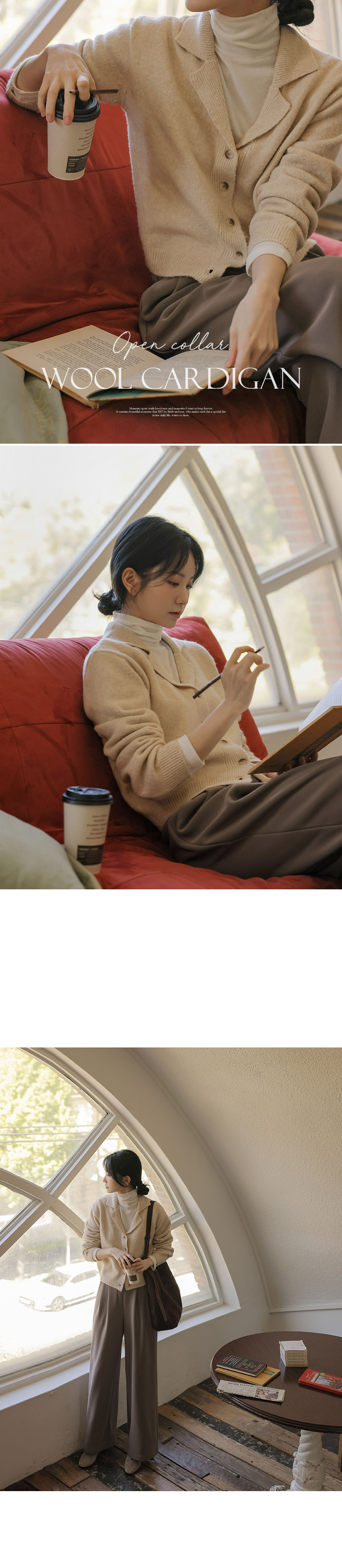 This is an open-collar cardigan that gives off a neat and tidy mood. Made with wool-blended knit having supreme heat retention, it is warm to wear in winter. The length of the pants covers the waistline, which is refreshing and makes your legs look longer!