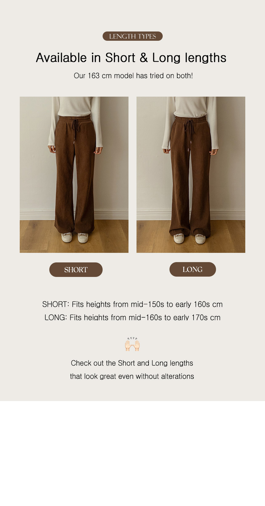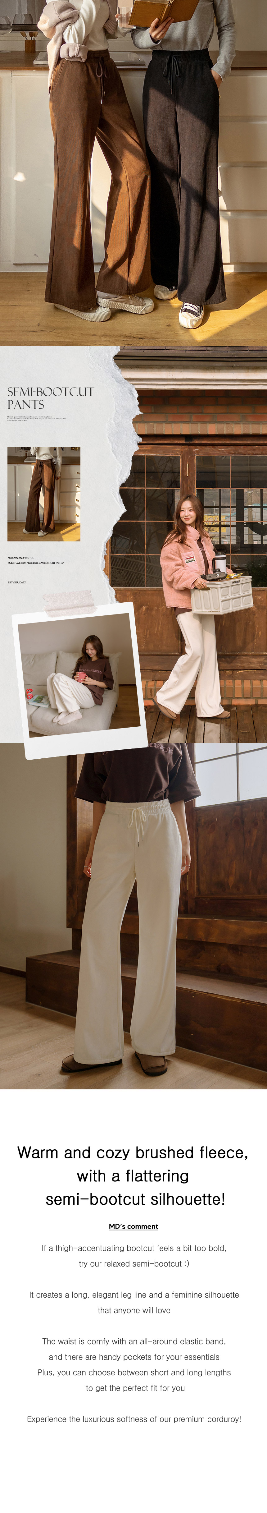 This versatile piece offers a comfortable fit with its relaxed semi-bootcut design and a cozy, blanket-like fleece lining to keep you warm. Available in two lengths of short and long.