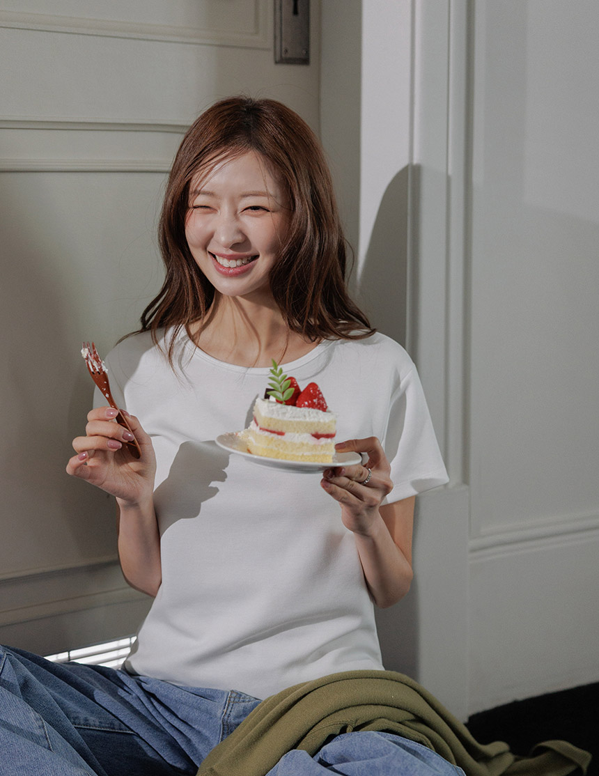 This T-shirt is designed to look neat and stylish on its own! A T-shirt that’s too loose can be hard to style, but the slim waistline and rounded hem help create a flattering, streamlined silhouette.