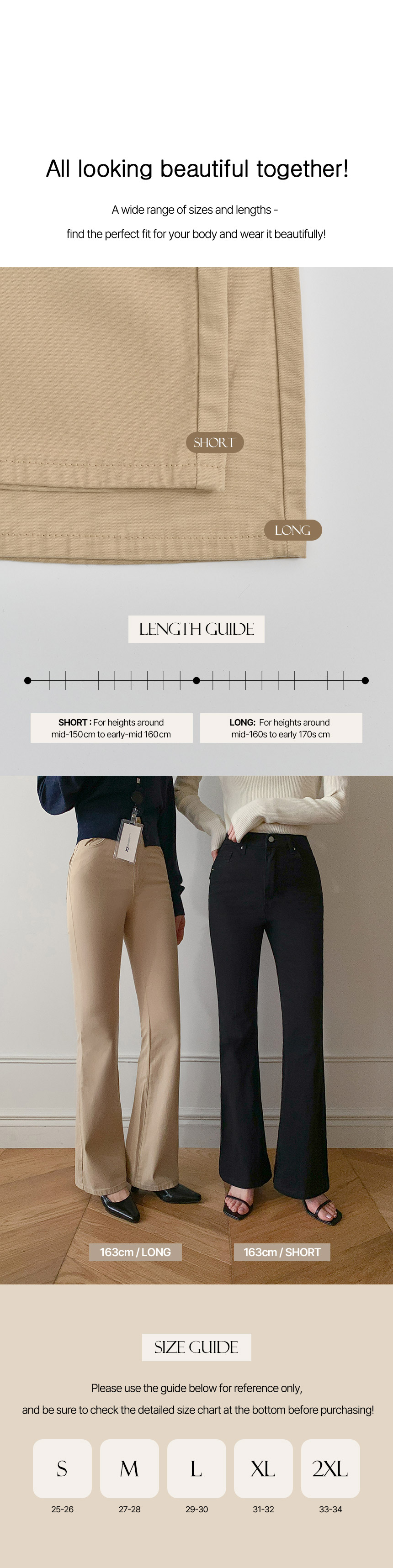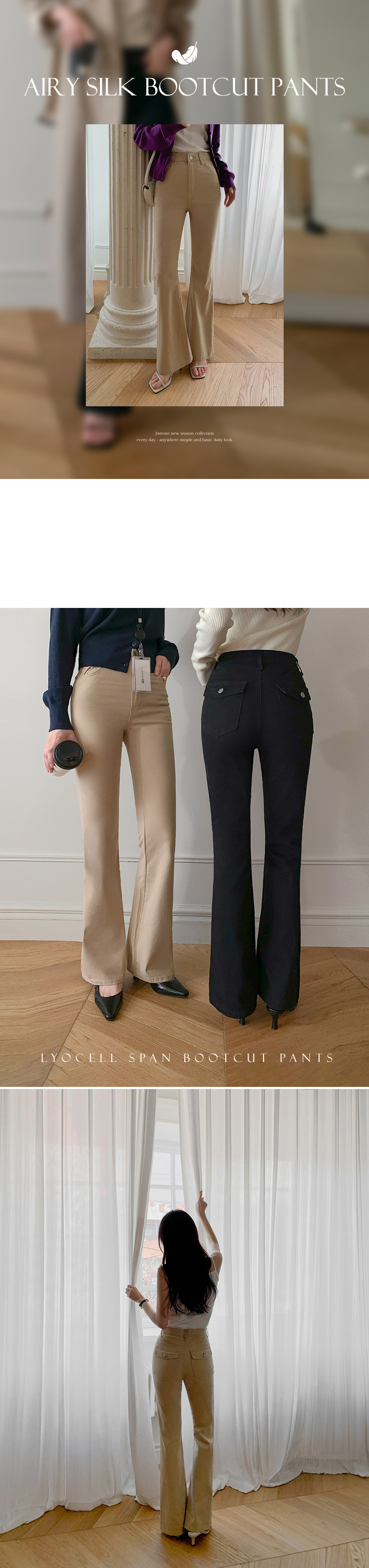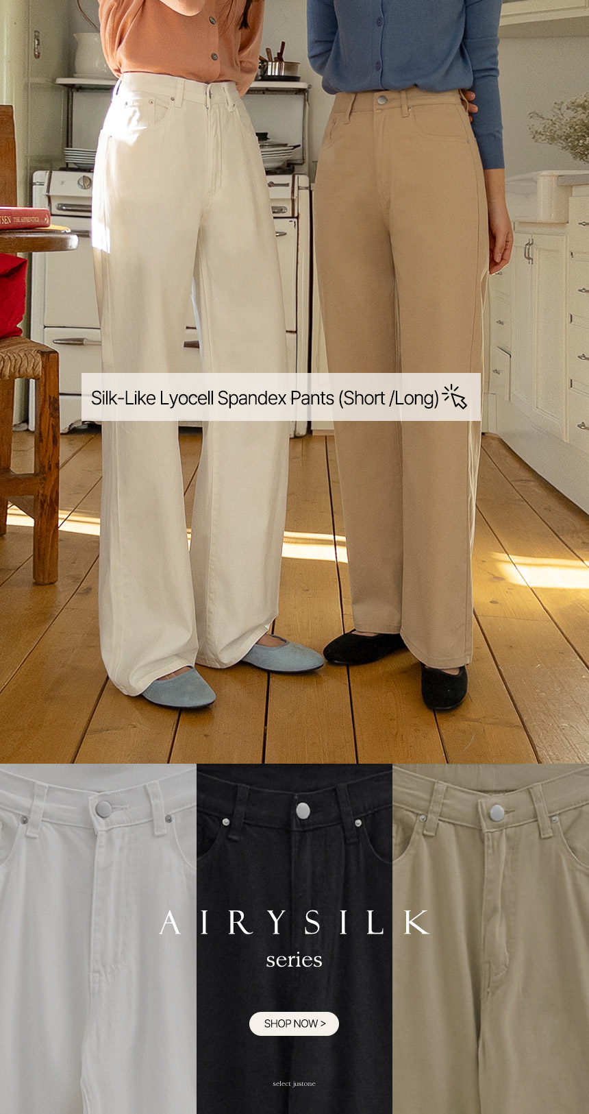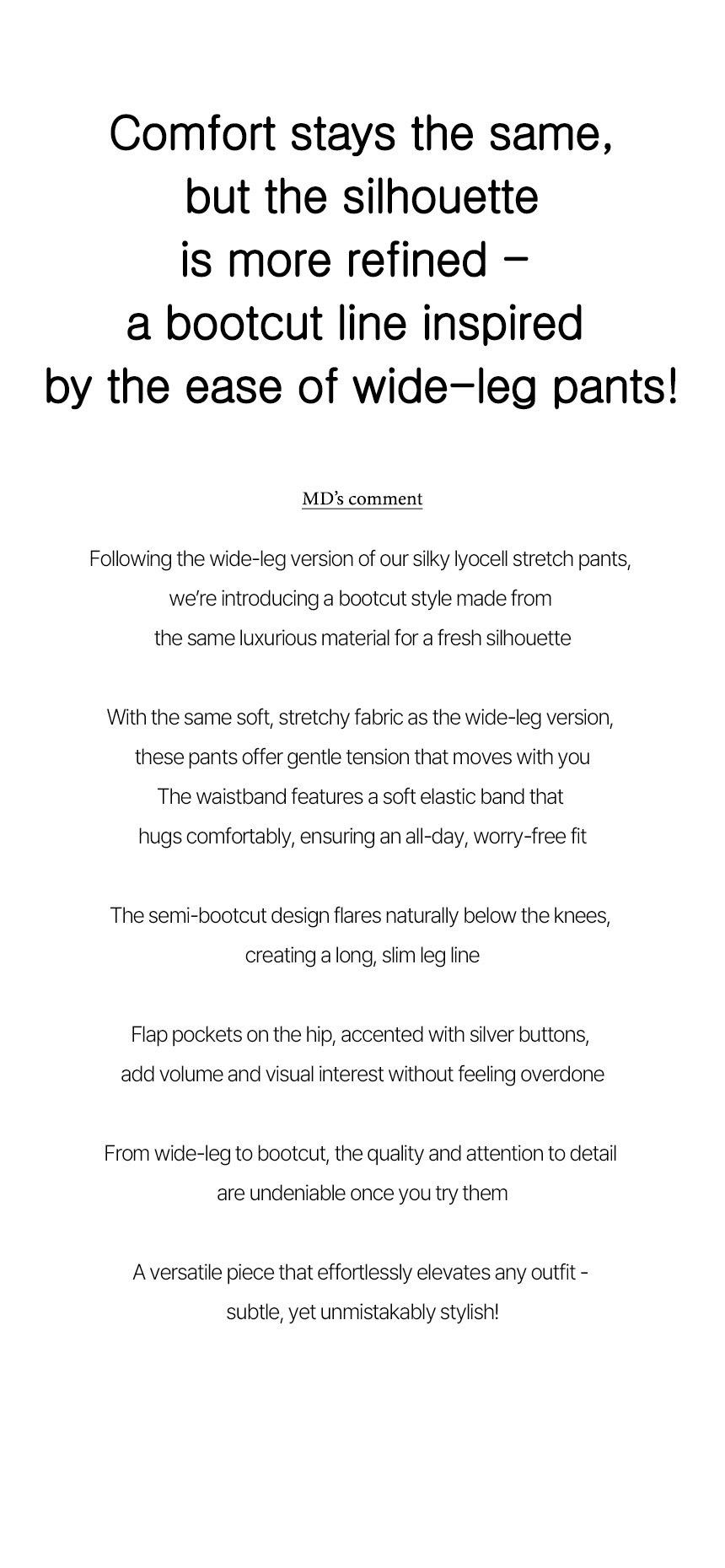 Following the silky lyocell wide-leg version, these bootcut pants are here! Their soft texture and stretchy spandex provide a comfortable fit, while the bootcut design creates a flattering, slim leg line. Available in two lengths of Short and Long!