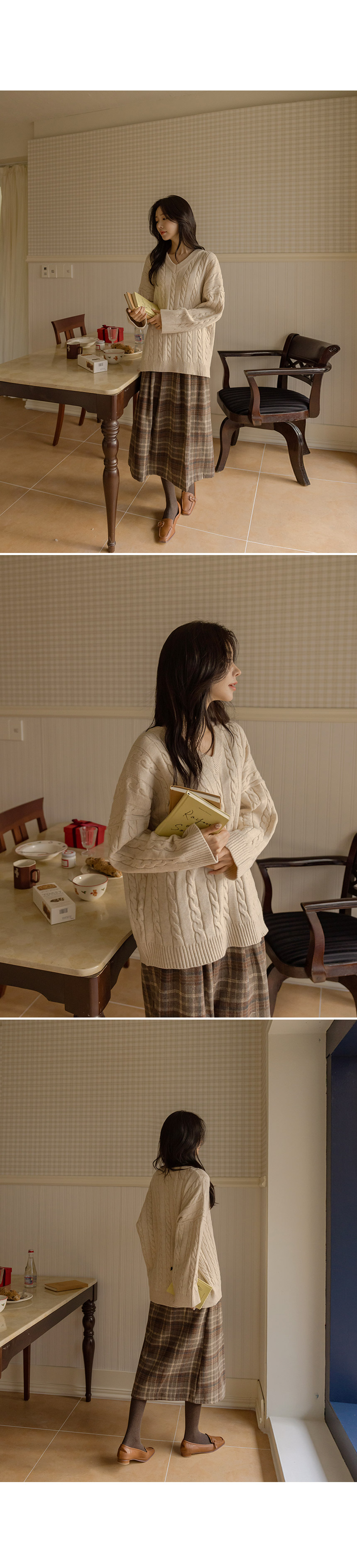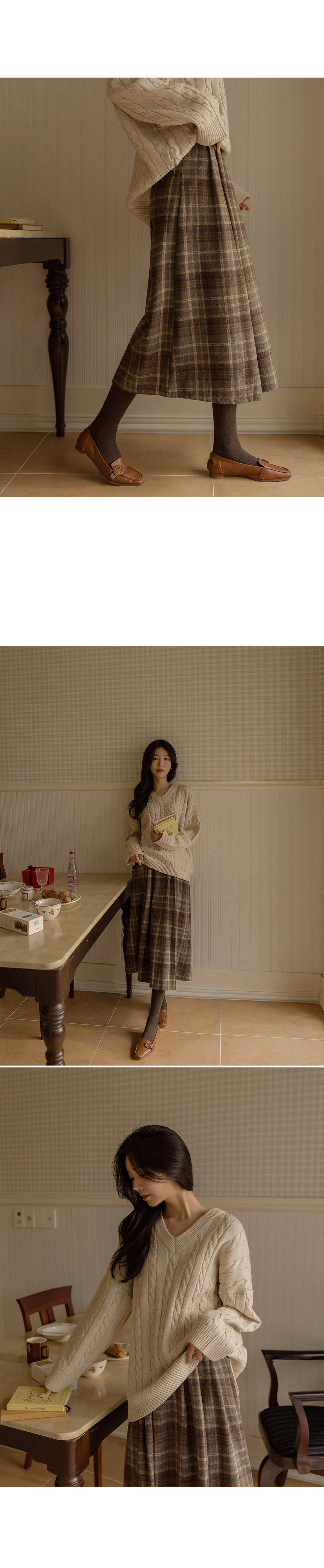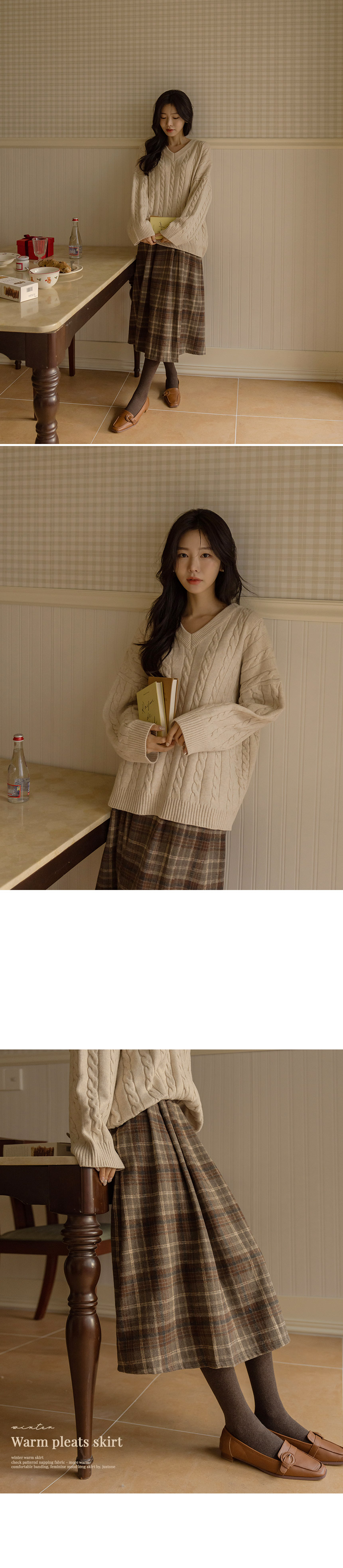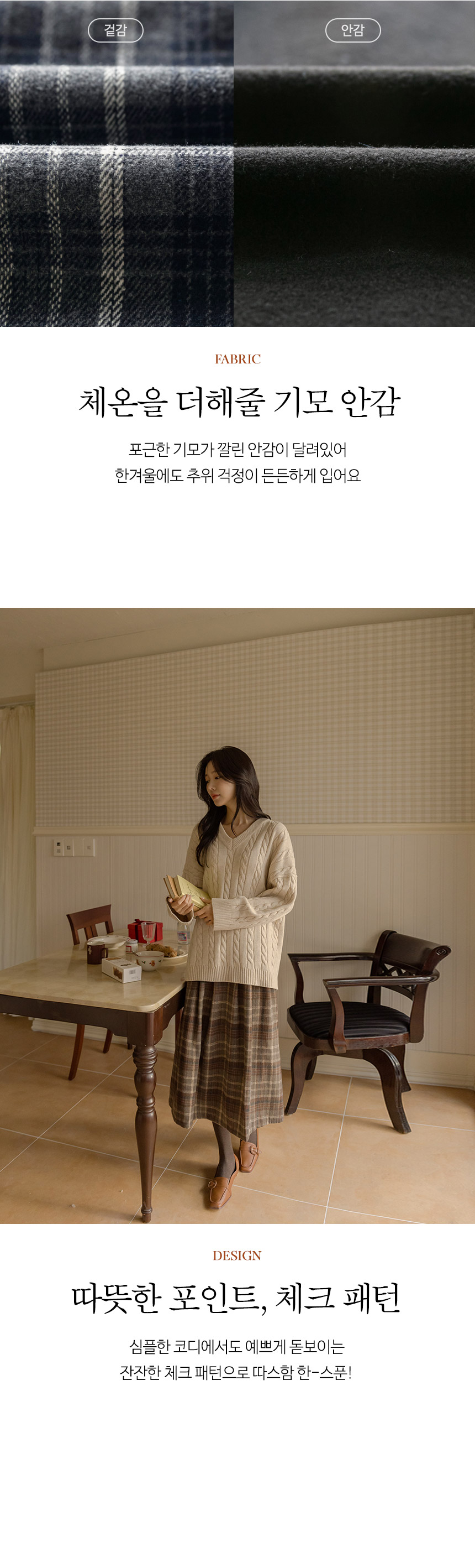 5DA29387NN_Kedi napping lining Pleats check skirt