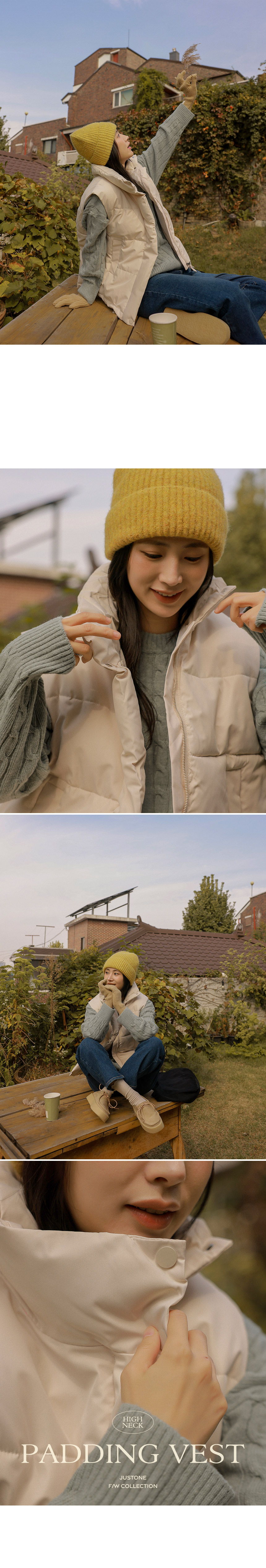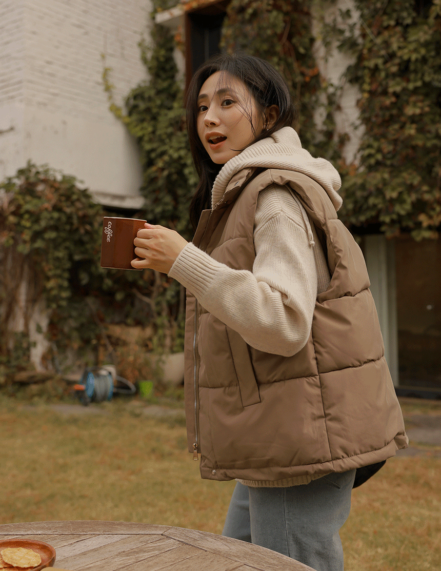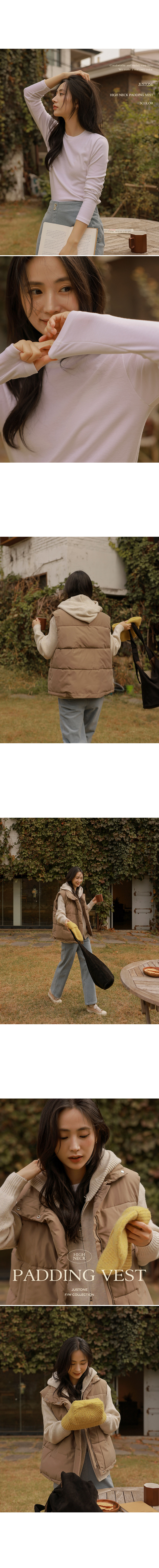 Casual with a padded vest that feels fluffy! The high neck design blocks out the cold wind. The loose fit covers up excess fat, making it a great item to wear comfortably all winter long~