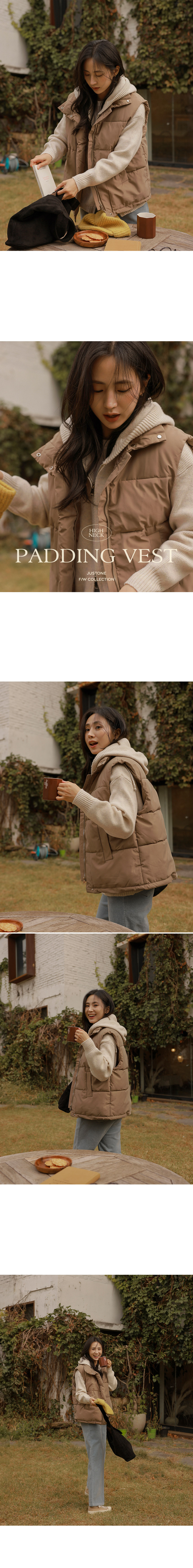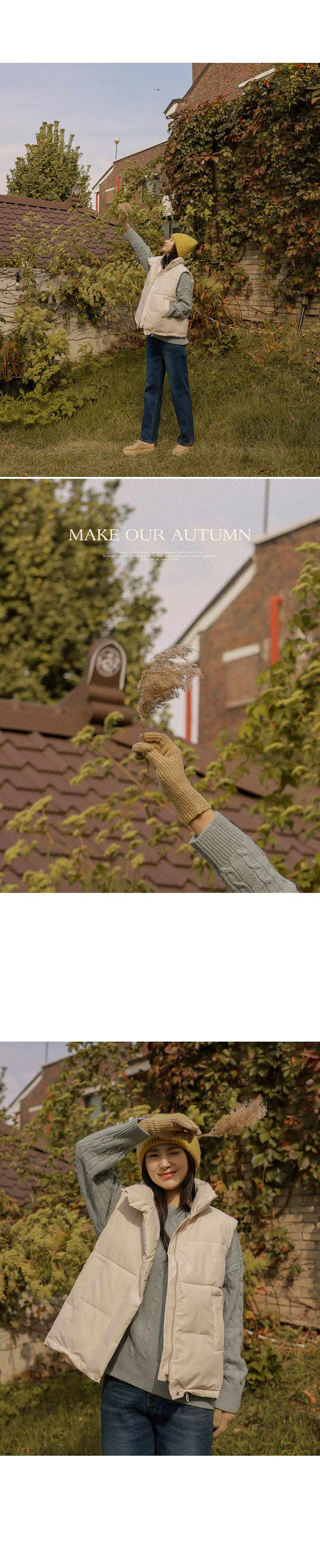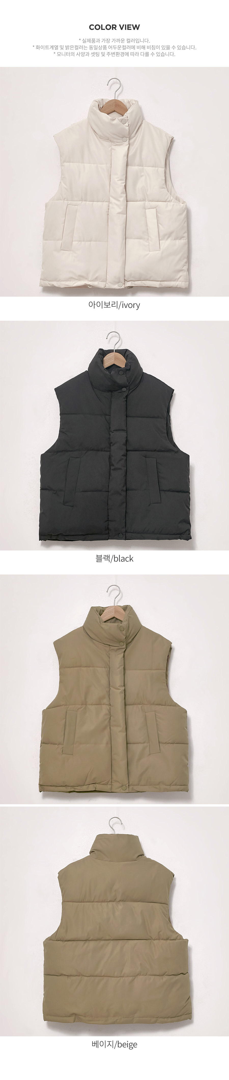 Casual with a padded vest that feels fluffy! The high neck design blocks out the cold wind. The loose fit covers up excess fat, making it a great item to wear comfortably all winter long~