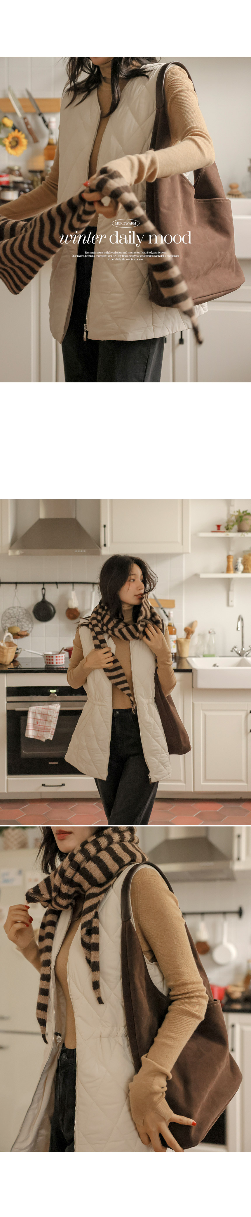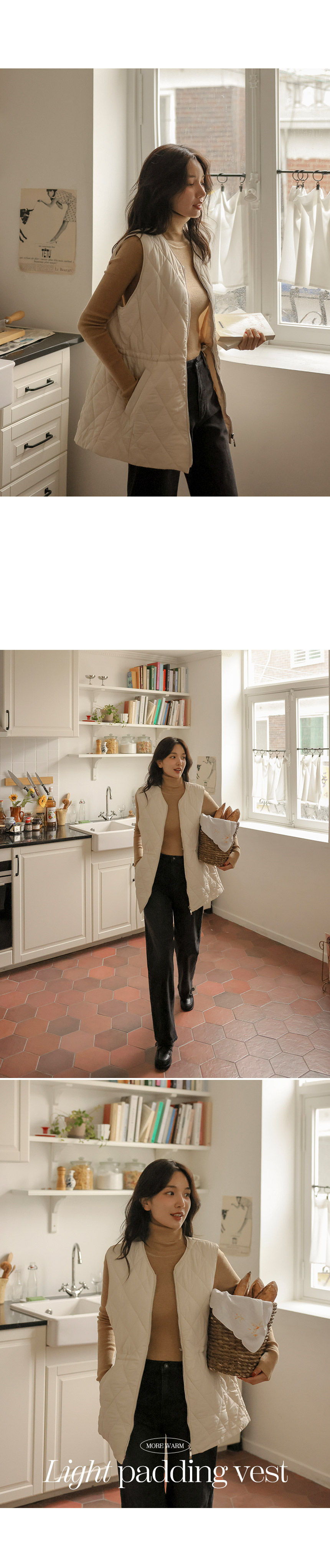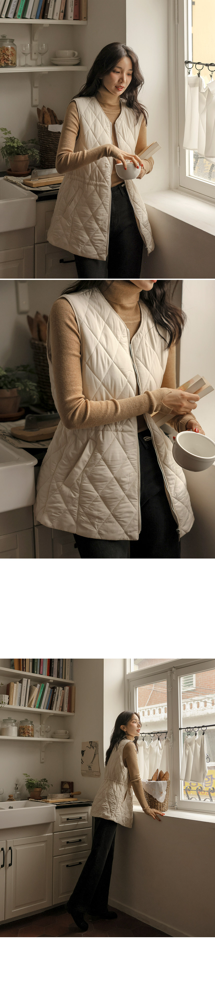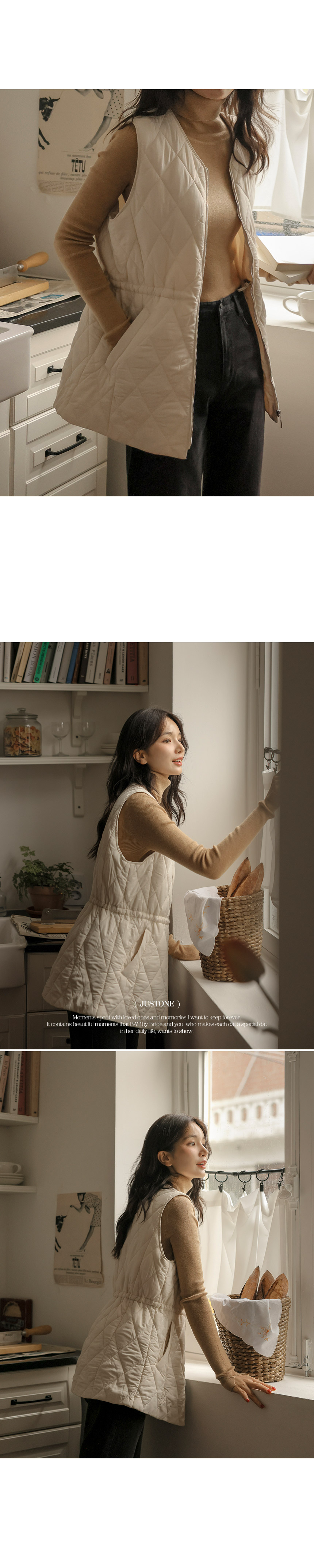 A lightweight vest that can be used in many different ways! The long length covers the hips and the the waist string creates a feminine line. It is great to wear as an outerwear indoors and at the office, as well as an innerwear under a coat!