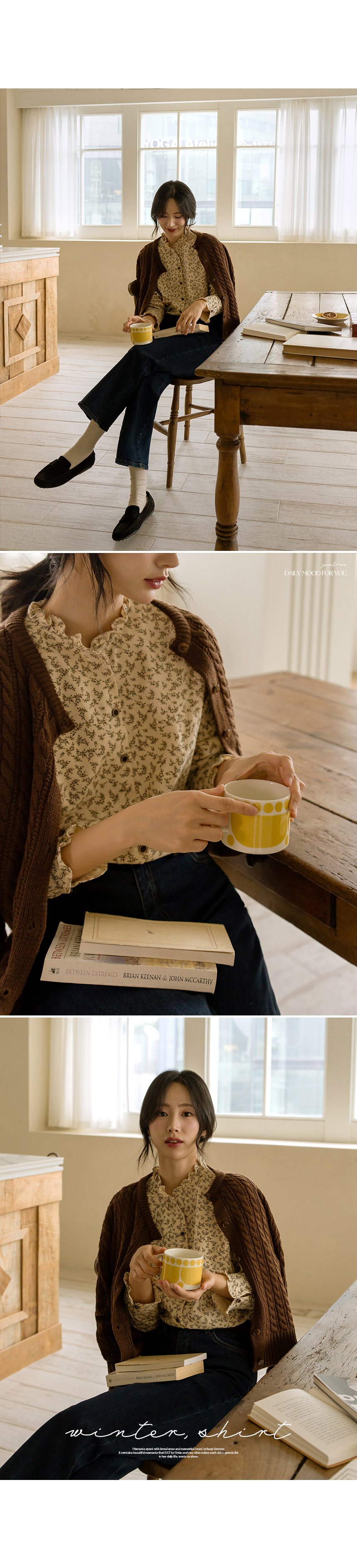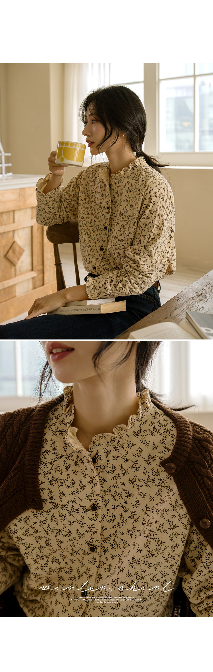 5DA30626NN_Sar Frill Neck Floral Print Fleece Shirt
