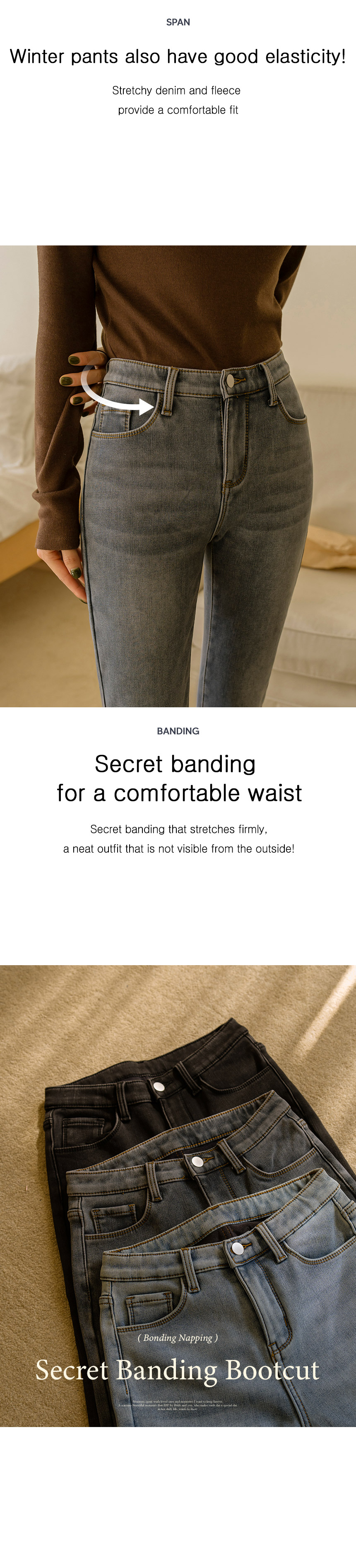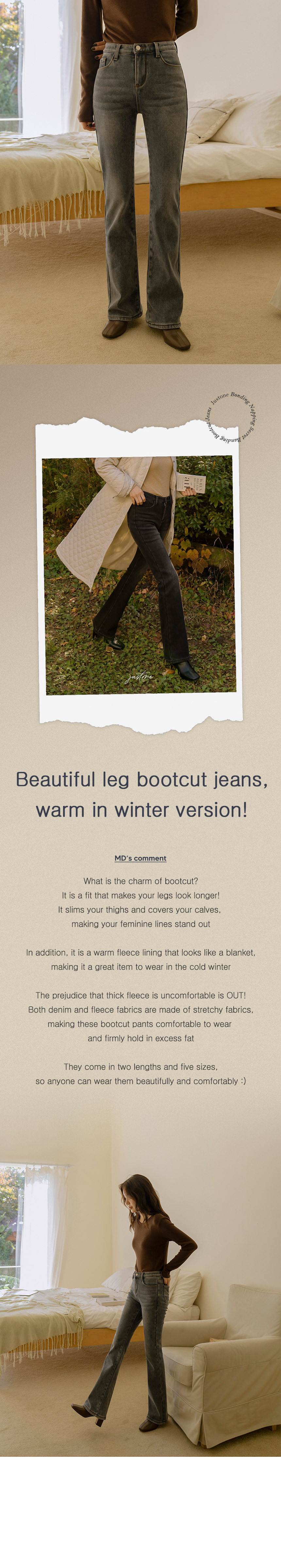 6DA30696LJ_Bonding Brushed Secret Banding Bootcut Jeans (Short/Long)