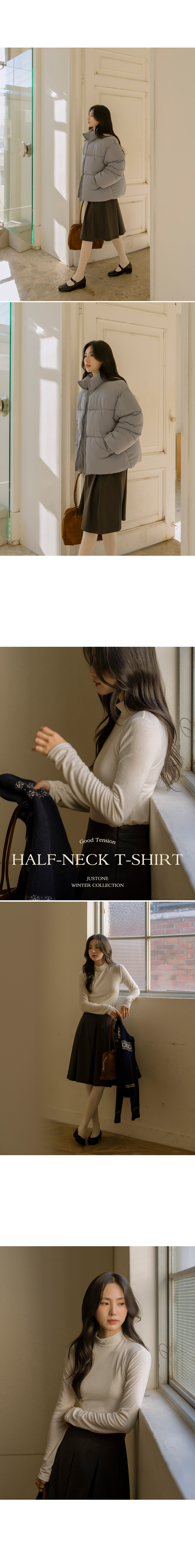 This is a lightweight spandex T-shirt that wraps comfortably around the body. It can also be worn as an inner T-shirt, making it a solid inner item this winter!