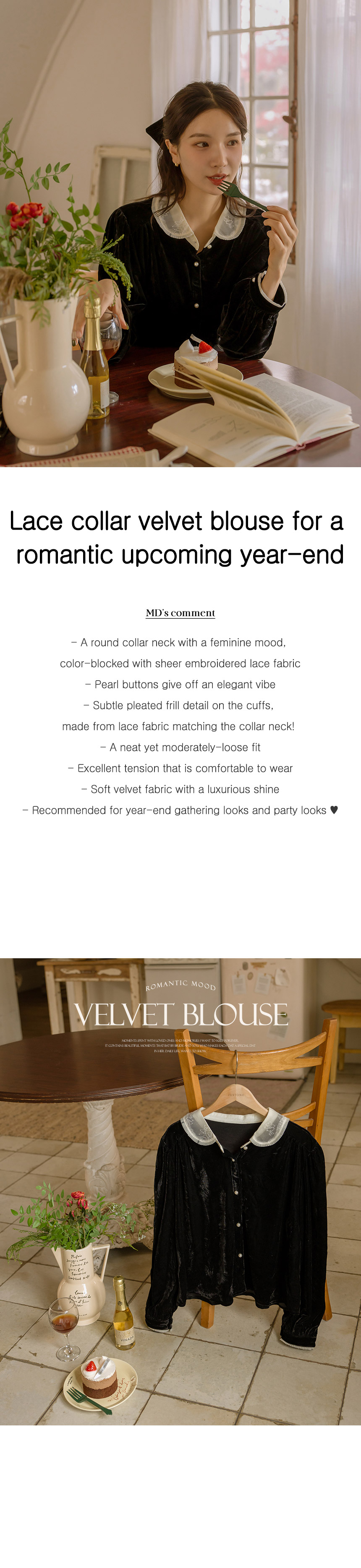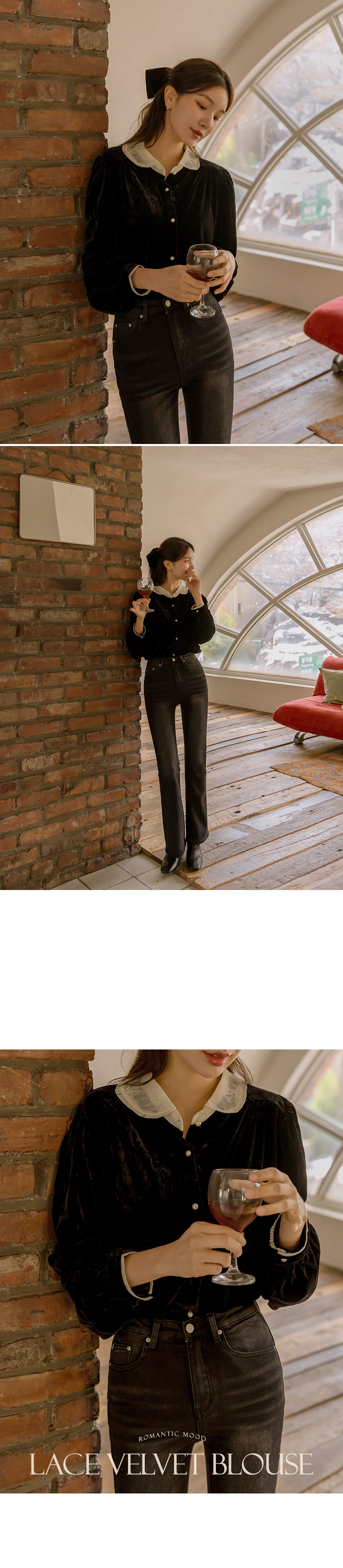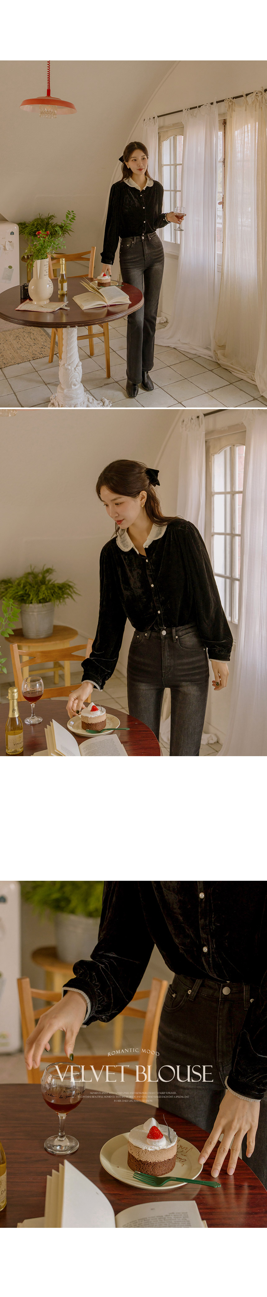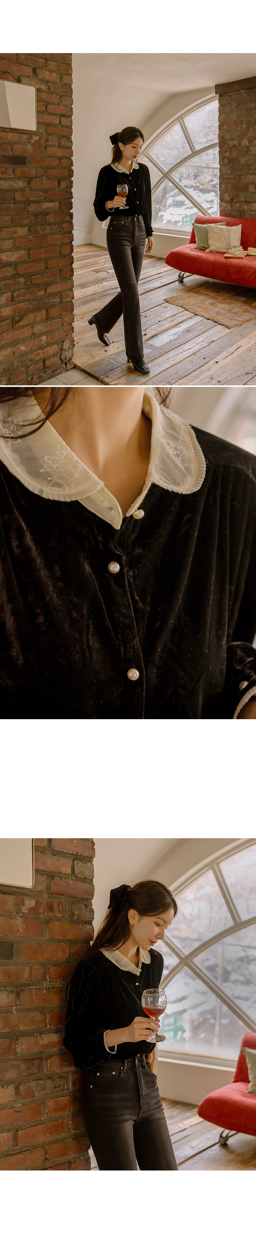 5DA30804NN_Lace Collar Velvet Blouse