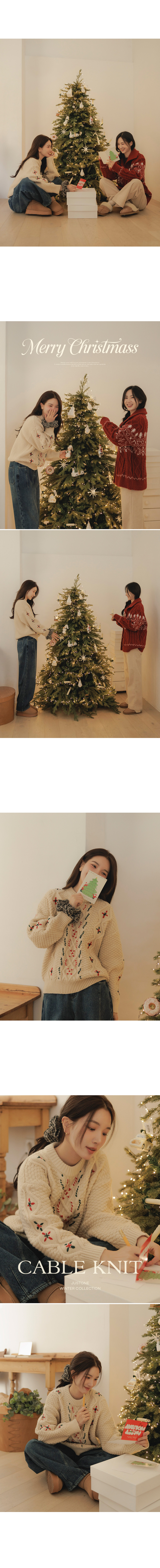This is an attractive item with a colored embroidery that naturally brings to mind of Christmas. It is a wool-blended knitwear, so it is warm and comfortable to wear~