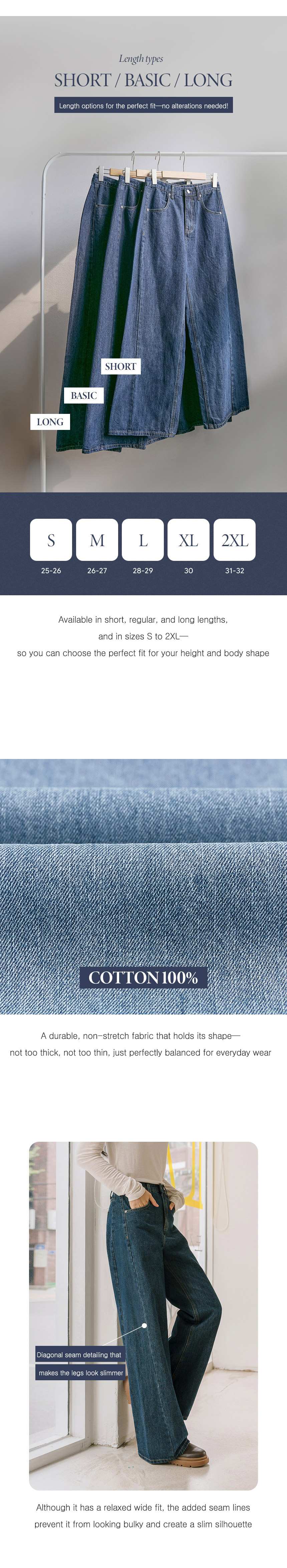 Cover-fit Diagonal Seam Wide Jeans (Short/Basic/Long)