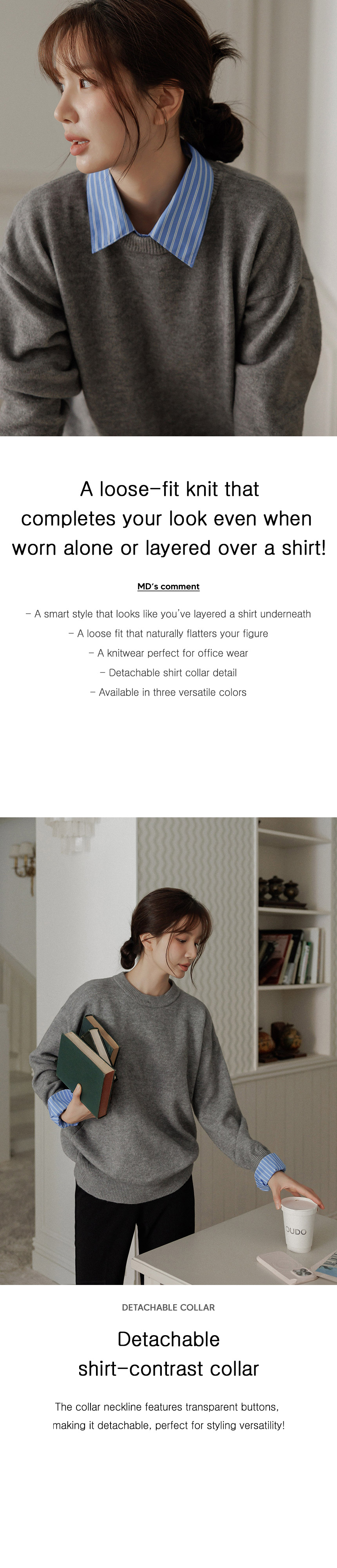This loose-fit knitwear is perfect for work or daily wear. The soft and thick knit material provides excellent warmth.