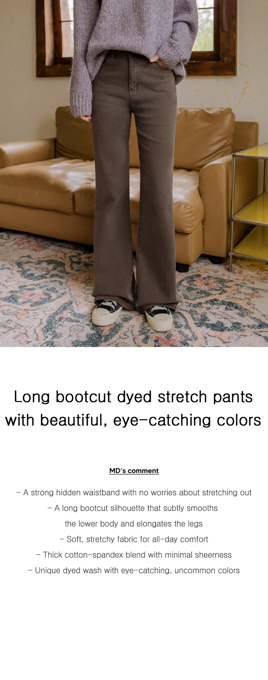 These pants are a must-have, featuring beautifully dyed colors with a washed finish. The long bootcut silhouette elongates your legs and subtly smooths over curves for a more flattering, slimming look.