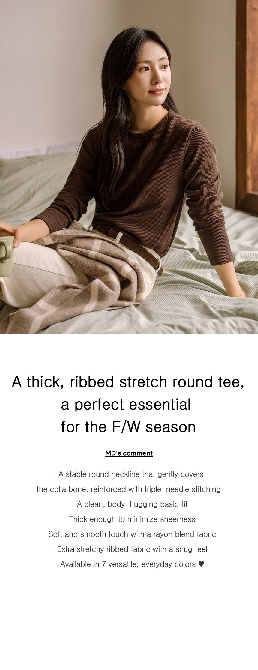 5DA31996HR_Thick Ribbed Stretch Round Tee with Minimal Sheerness