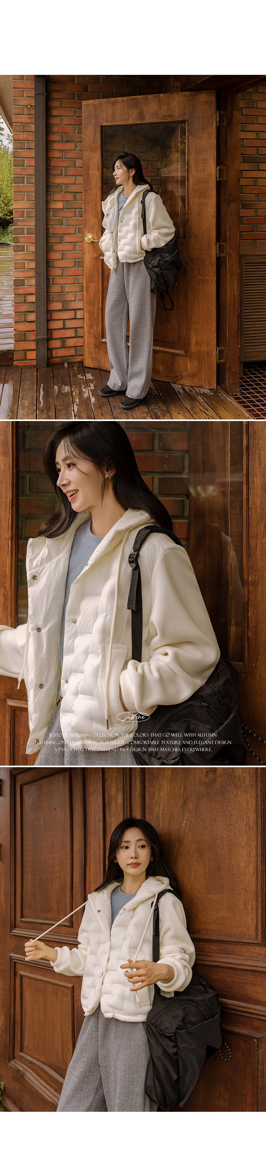 - 5DA31993HR_Fleece Contrast Lightweight Hooded Puffer Jacket