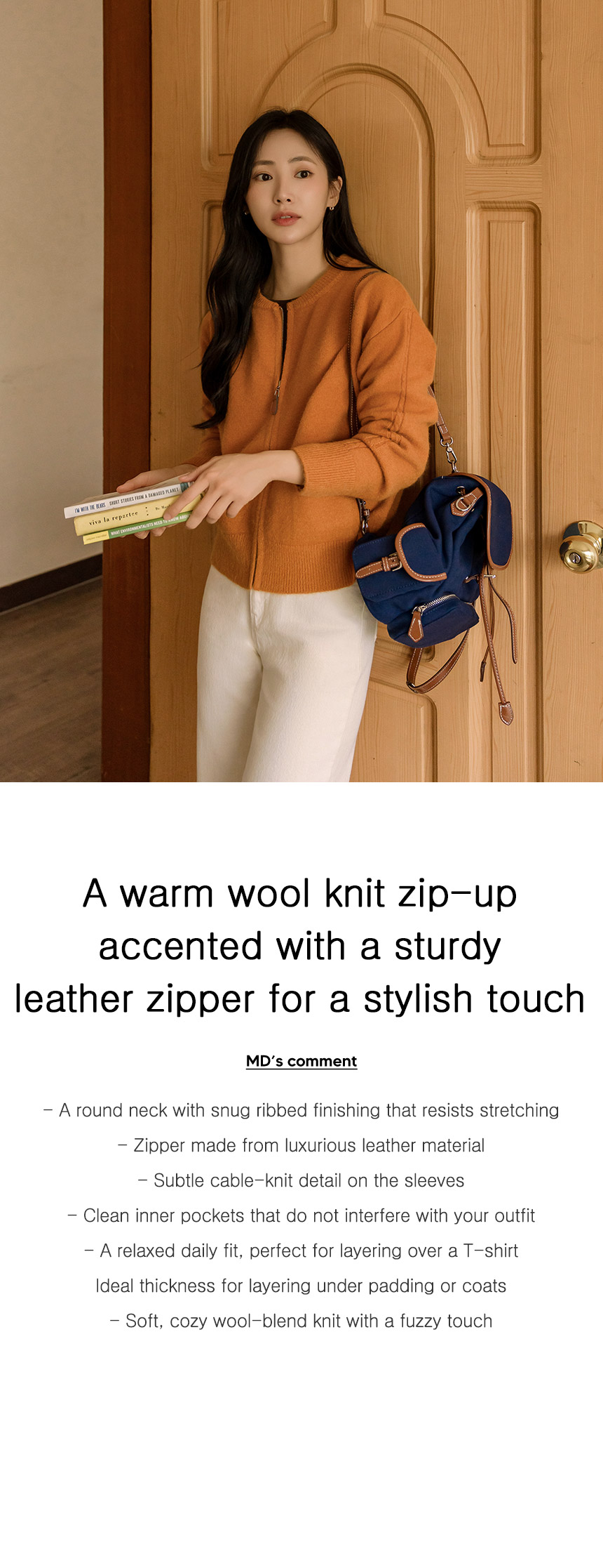 5DA31995HR_Leather Zipper Pocket Wool Knit Zip-Up