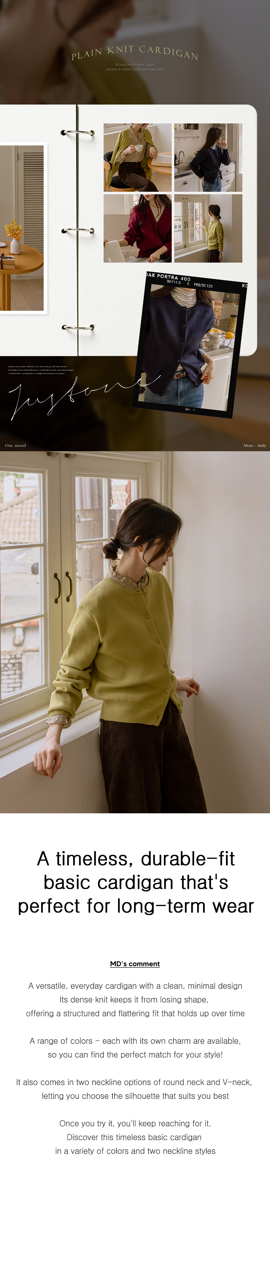 6DA32023NN_Plain Structured-Fit Basic Cardigan (Round/V-Neck)