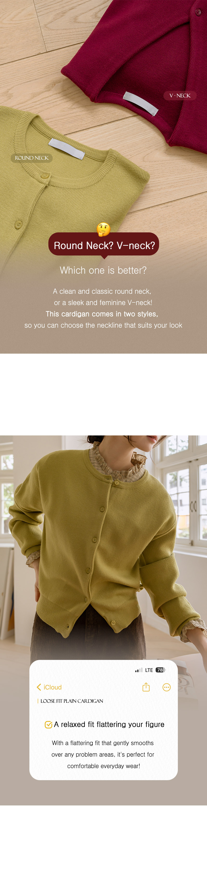 This basic cardigan is made of sturdy material and has a nice fit! It comes in a variety of vibrant colors and two necklines of round and V-neck, so you can choose the one that best suits your style :)