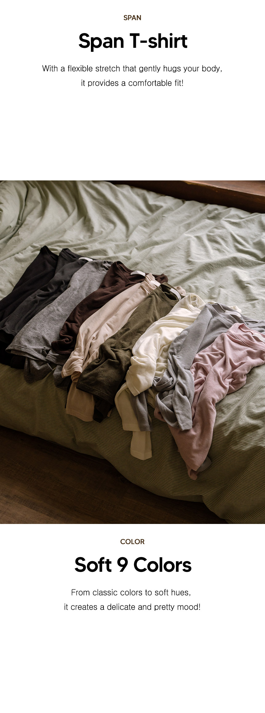 Thin and light, yet warm, this wool spandex round T-shirt making from flexible spandex is comfortable to wear. Its neat fit makes it a versatile daily piece.