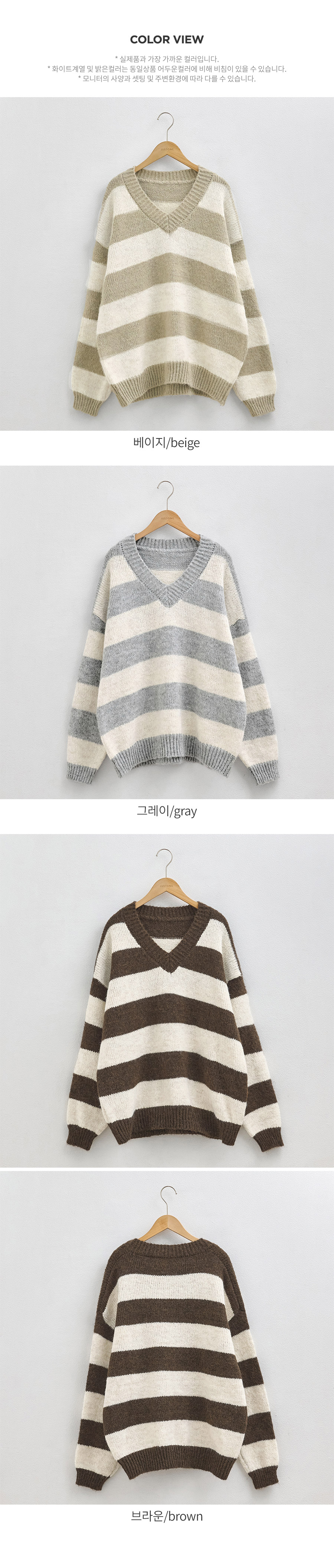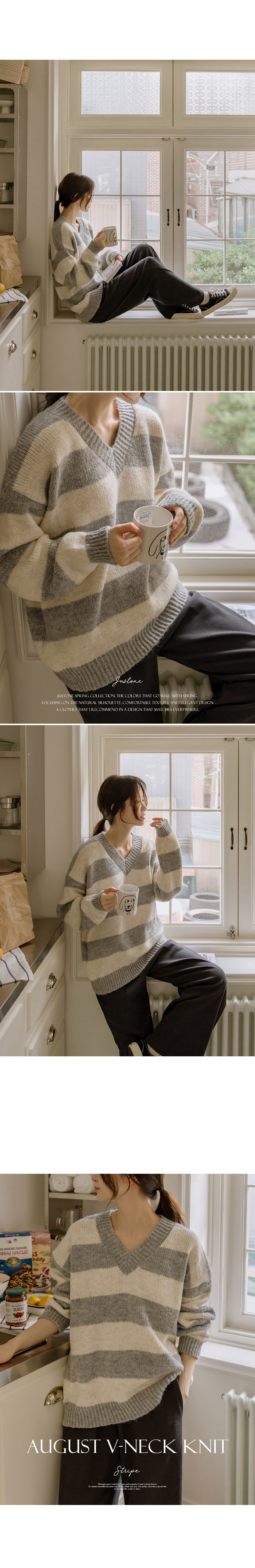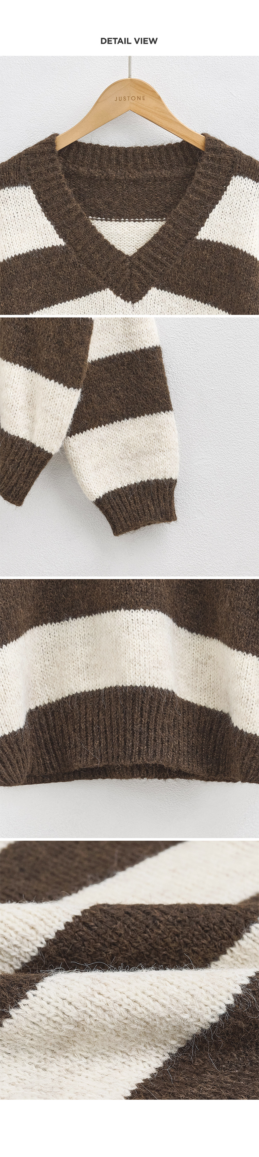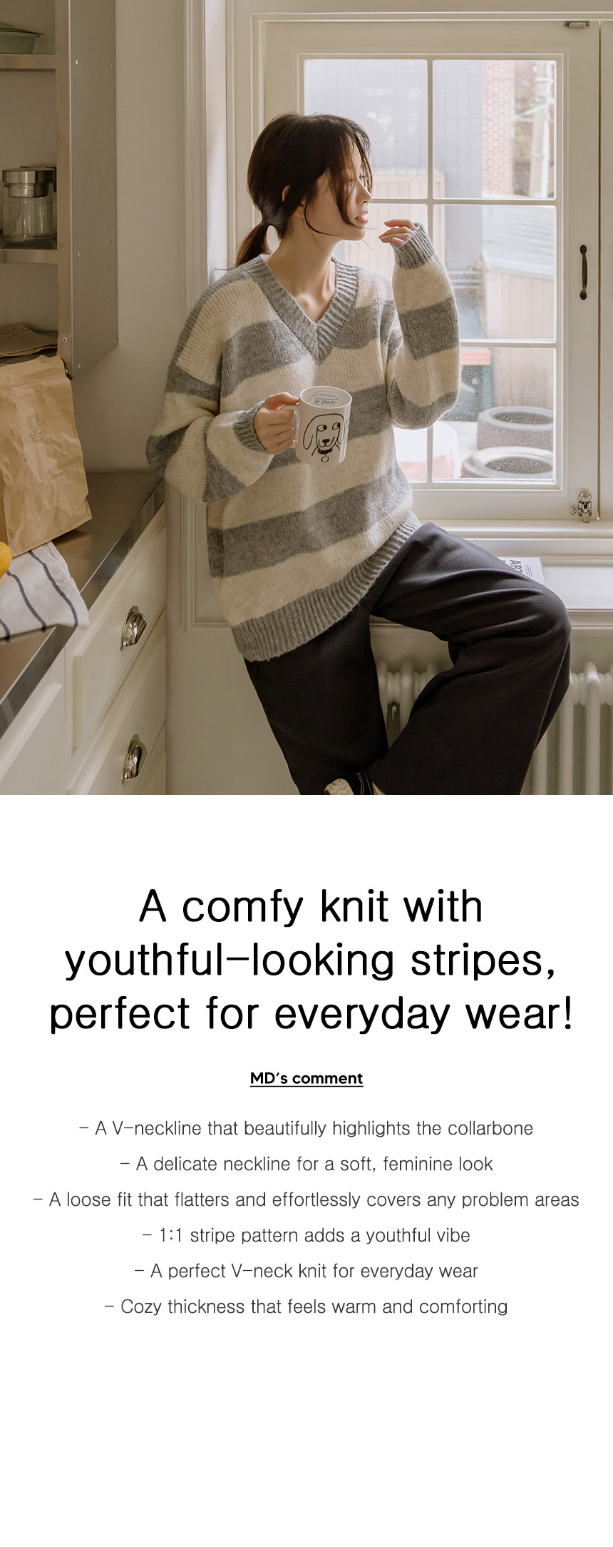 It is easy to wear with a casual yet youthful striped pattern, and the V-neck design creates a pretty, delicate mood.