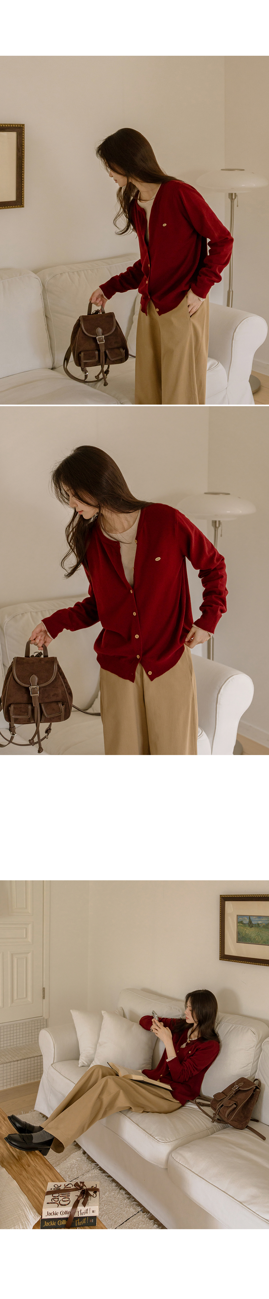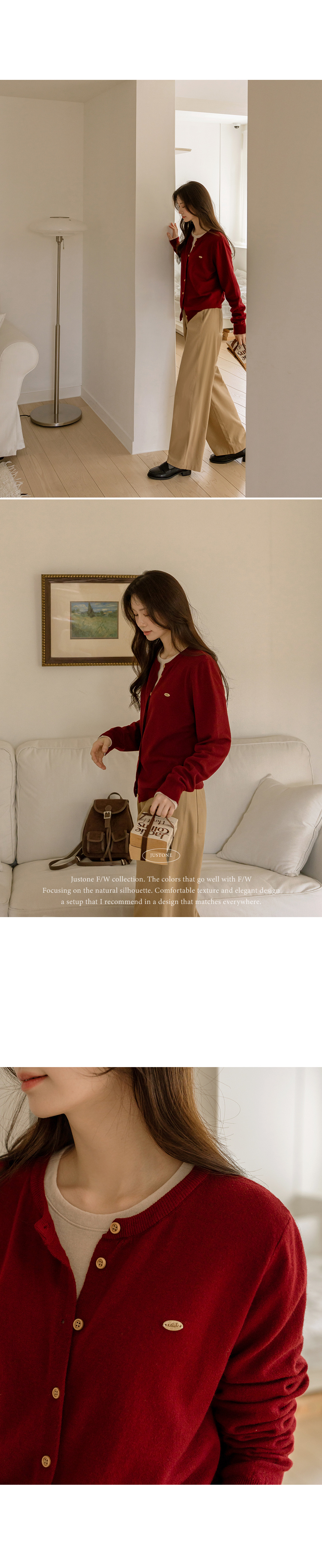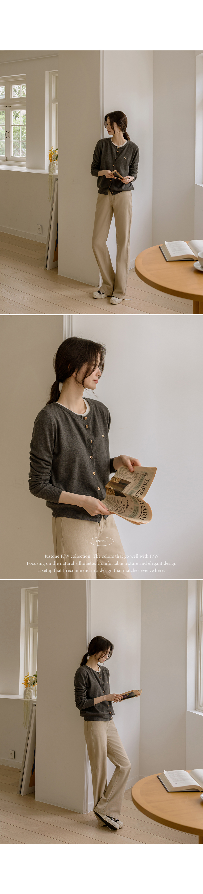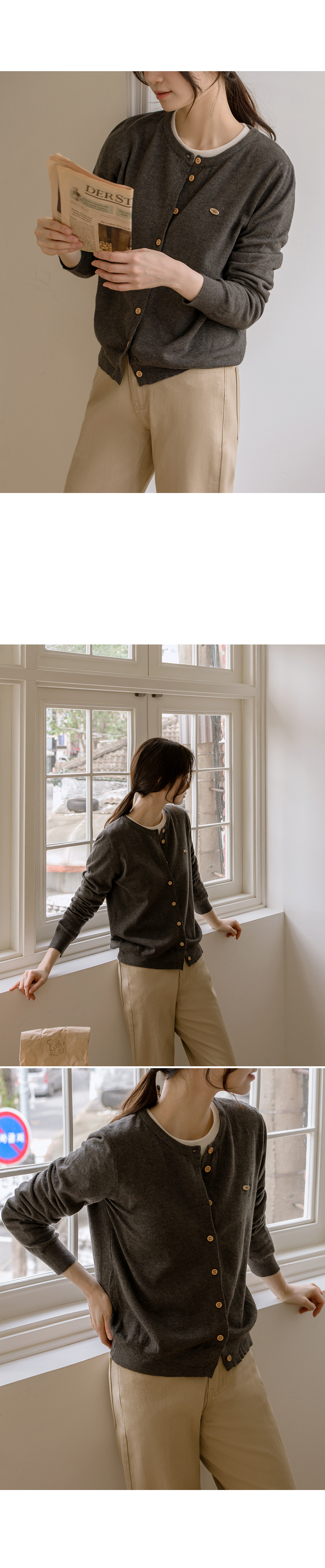 This cardigan features wood buttons as a focal point. Made of viscose material feeling soft on the skin, this cardigan is a great item to wear like a knitwear without an inner layer.