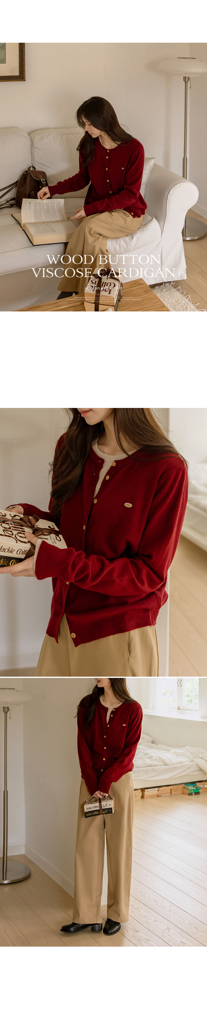 6DA32034NN_Lontz Wood Button Viscose Cardigan