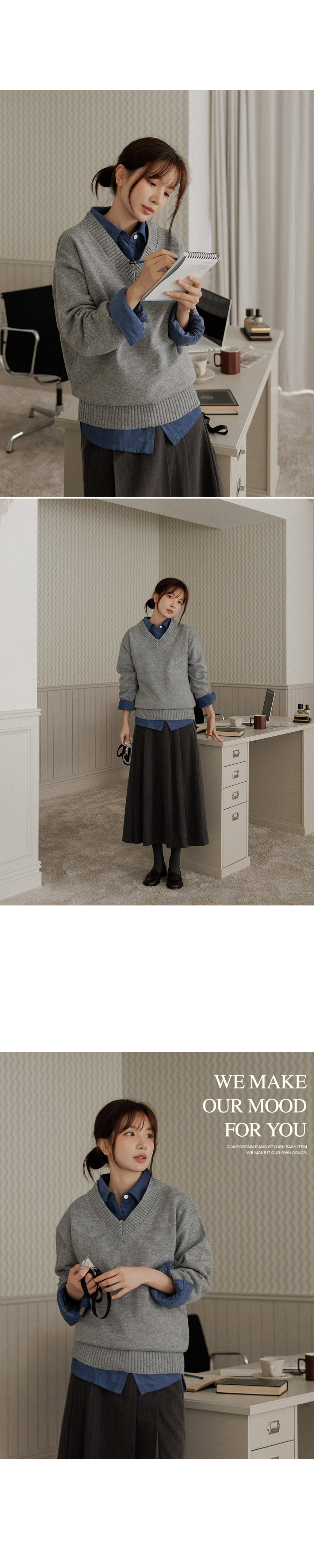 A knitwear piece that feels like a sweatshirt! Designed with a loose fit and made from thick knit material, this knitwear comfortably covers your body shape like your favorite sweatshirt. Available in both round-neck and V-neck styles - pick the one that suits you best!