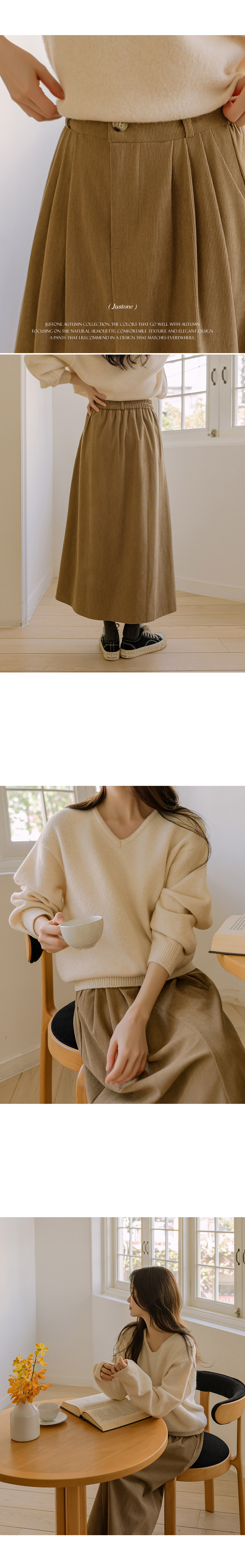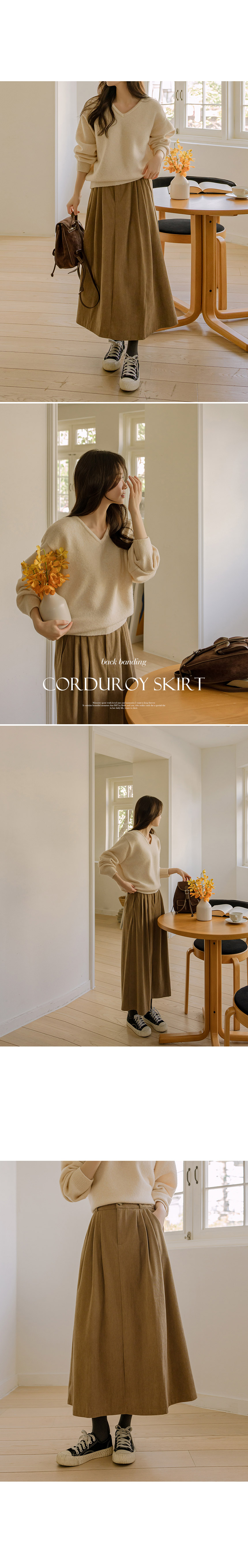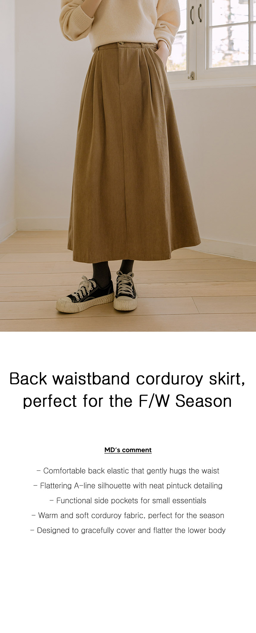 This corduroy skirt features a loose A-line silhouette with pintuck details, making it perfect for staying warm during the fall and winter seasons. The back elastic waistband comfortably hugs your waist, preventing slipping and ensuring all-day comfort.