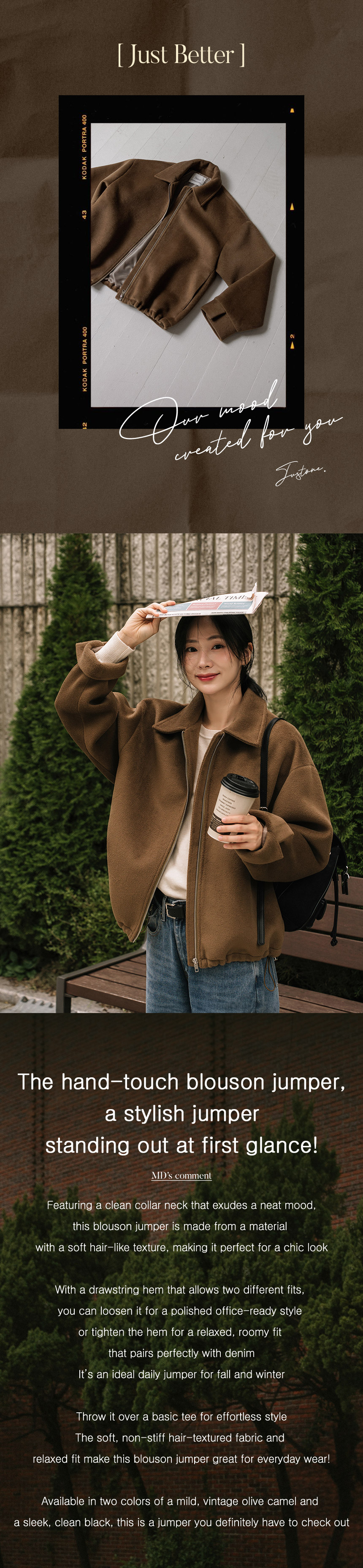 6OA0910JJ_[JUST BETTER] Noir Hand-touch Blouson Jacket