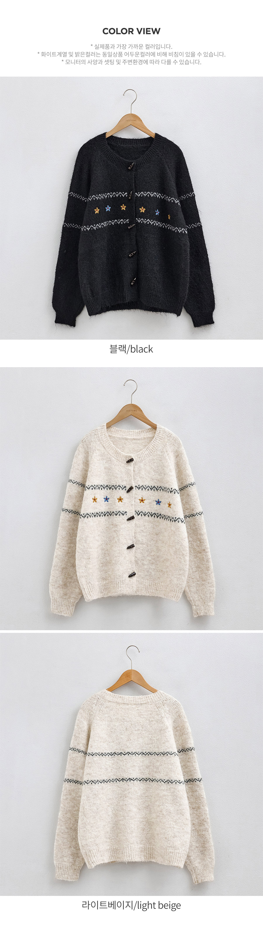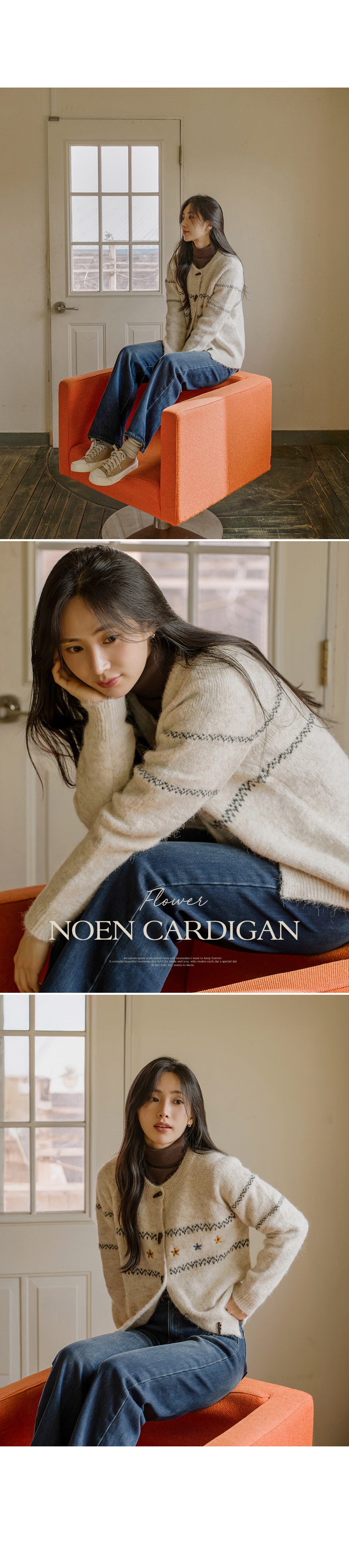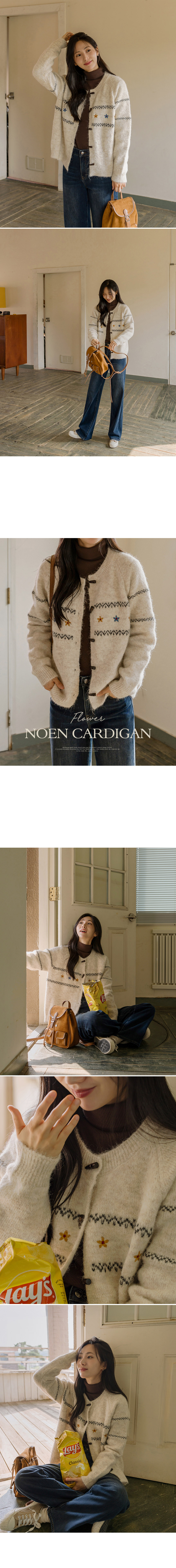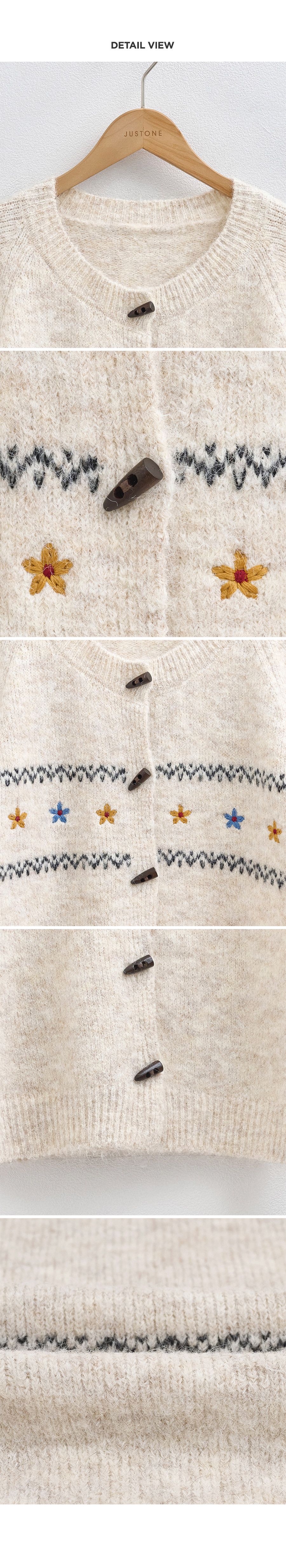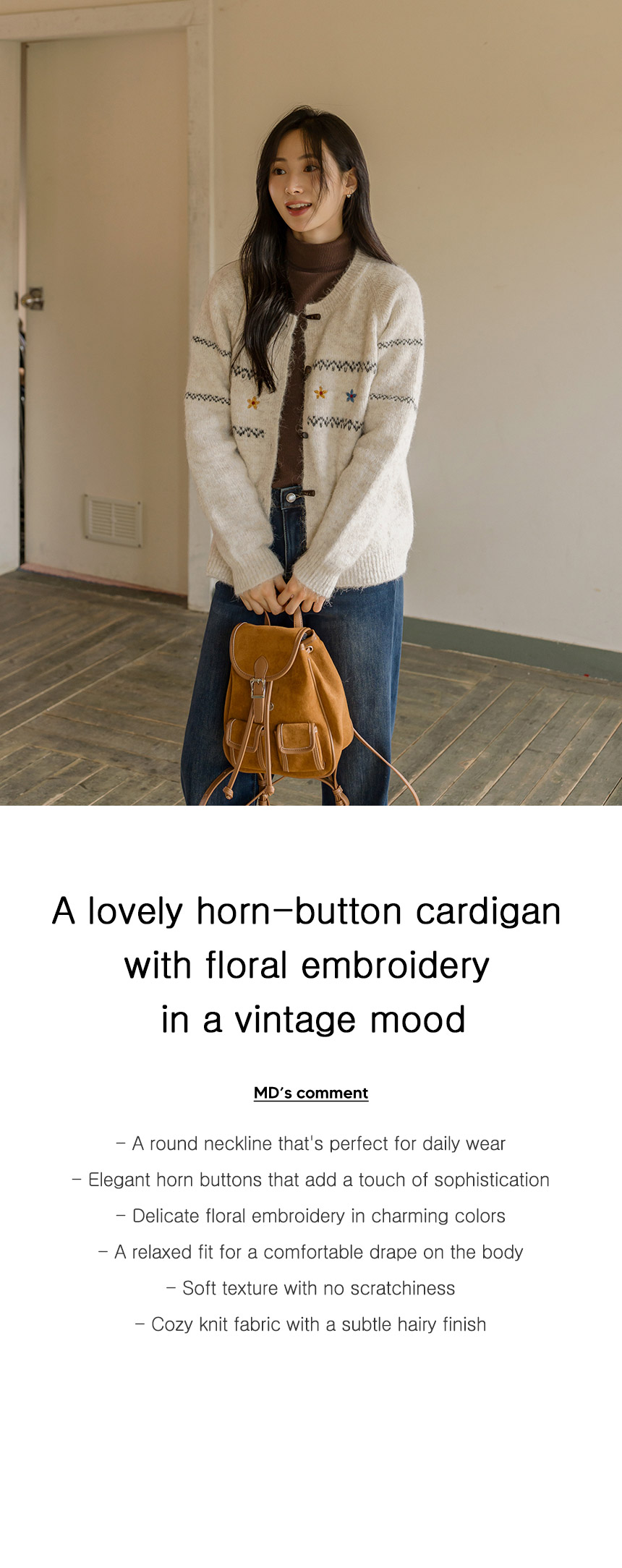 5DA32056HN_Noen Horn-button Floral Embroidery Cardigan