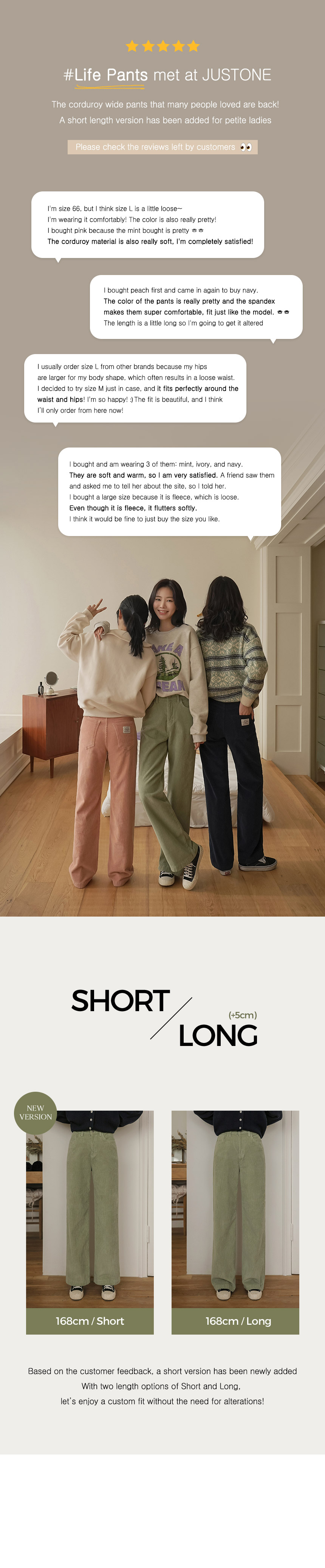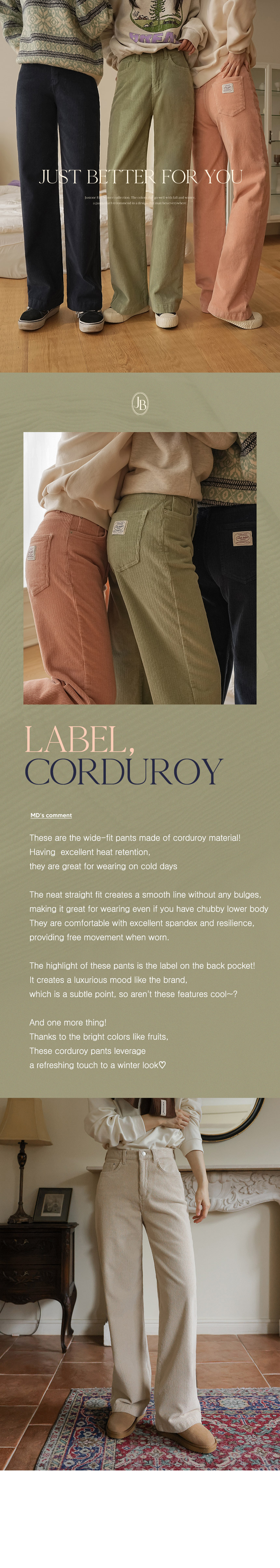 66OA0644JJ_[JUST BETTER] Carol Corduroy-lined Label Wide Pants (Short/Long)