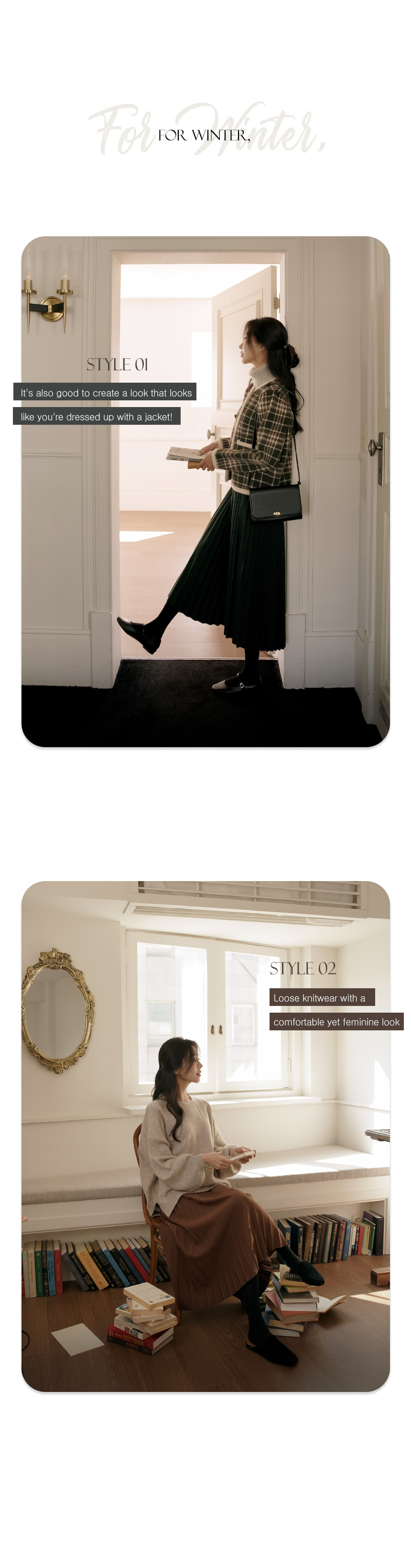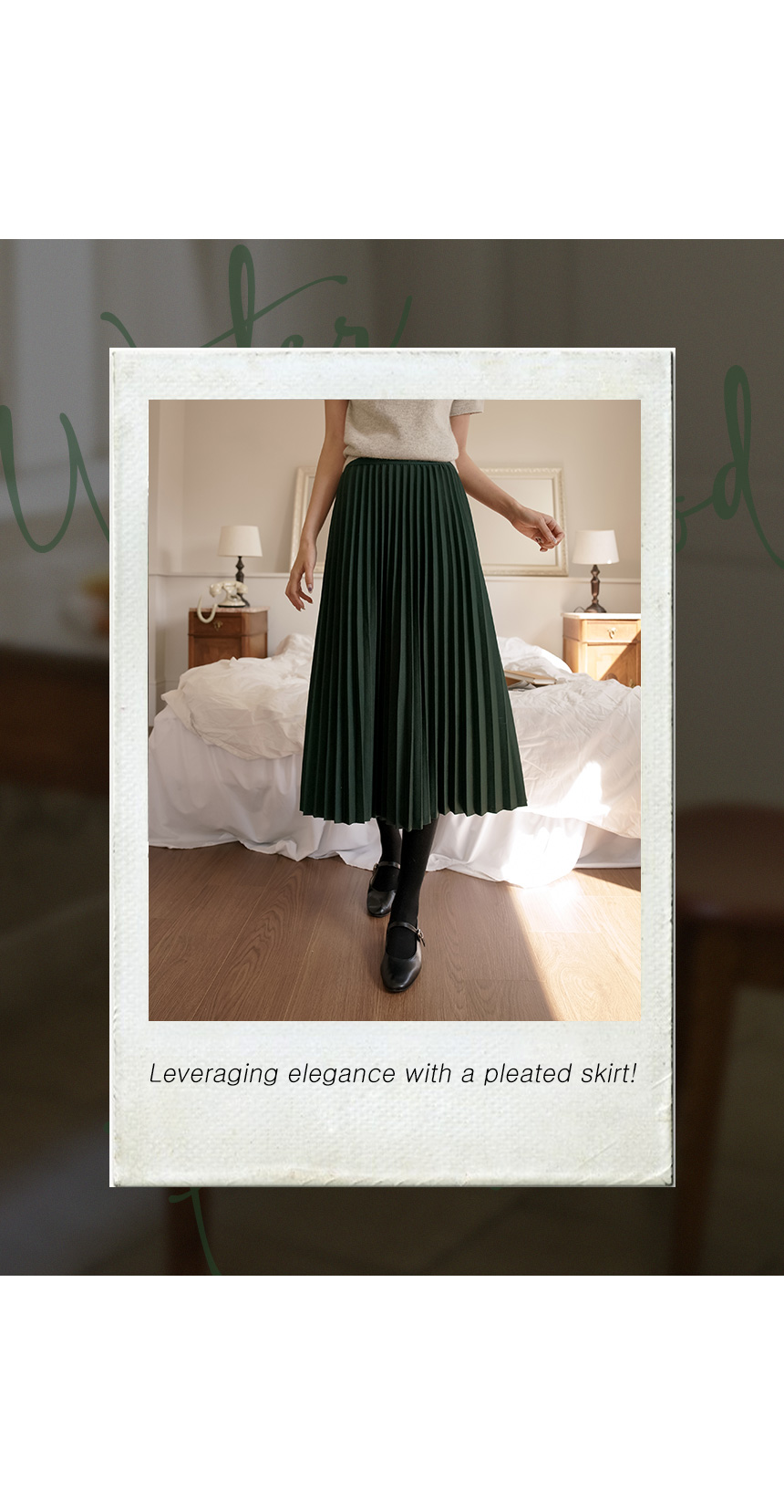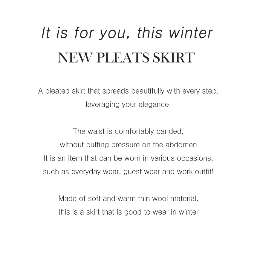A skirt that is luxurious with pleats and warm with wool material! It is a great item for different occasions, such as date look, guest look or work look in the cold winter~