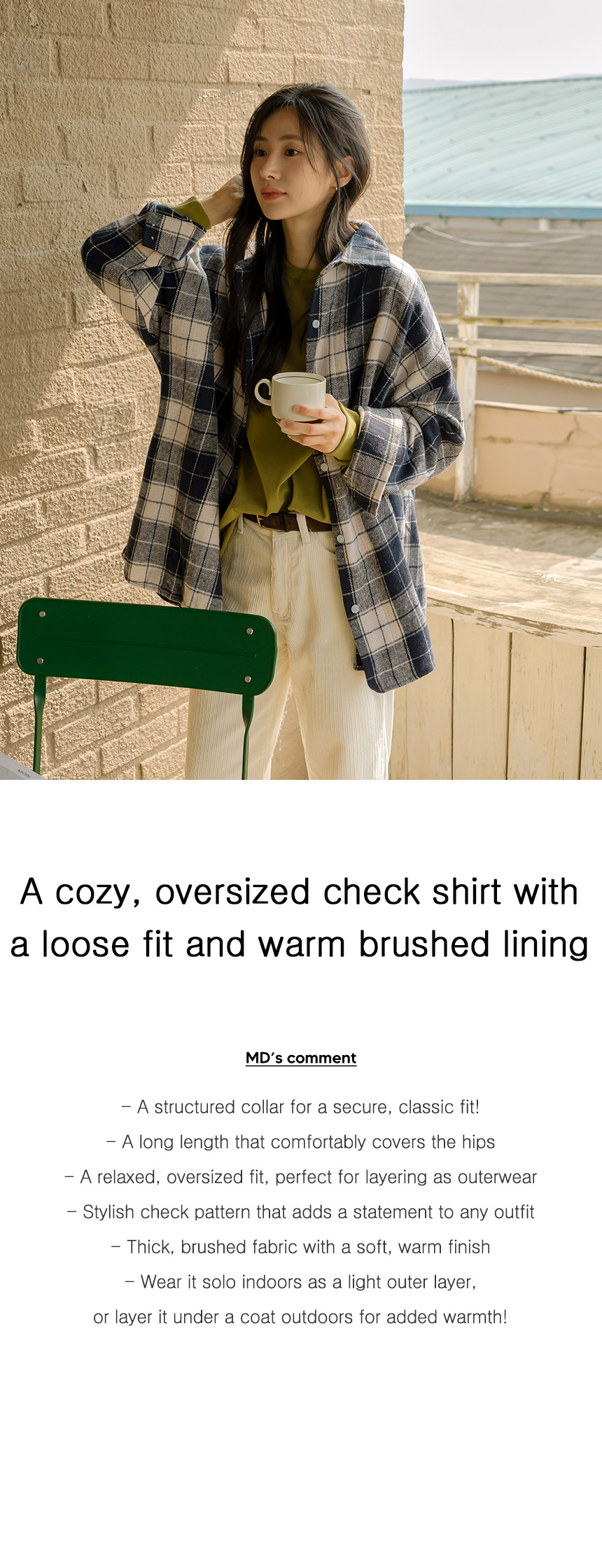 This checkered shirt is crafted from a thick, brushed fabric that keeps you warm even in winter. Its long length and relaxed fit make it effortlessly stylish, perfect for throwing on over any outfit!