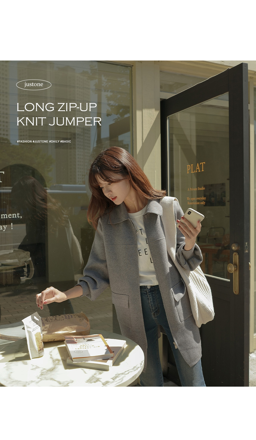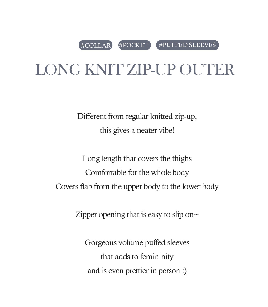A long knit zip-up that brings a chic, effortless vibe! It wraps the body comfortably with a snug, structured fit, while the soft and stretchy knit fabric ensures all-day comfort. Durable and flexible, it's perfect for year-round wear without worrying about it losing its shape. ♥