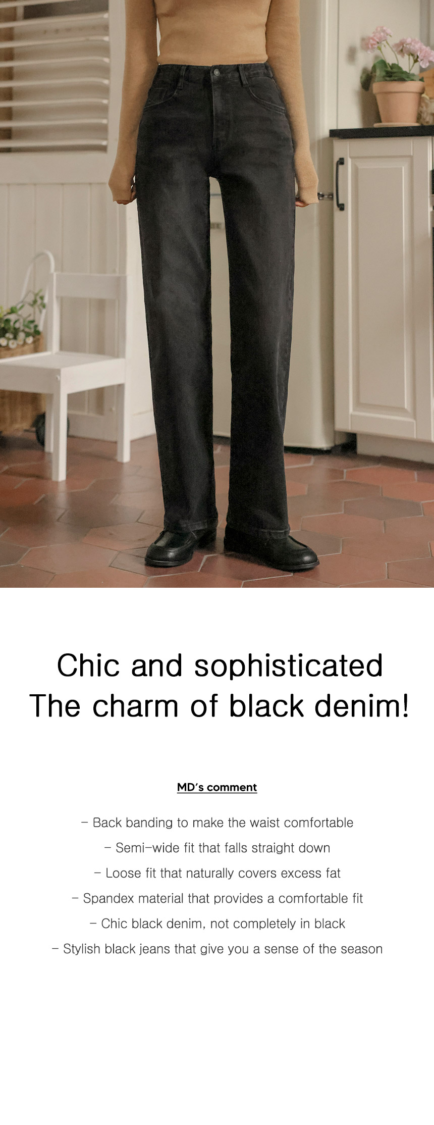 Meet the unique charm of deep-black jeans~ The semi-wide fit naturally covers the body shape, and the stretchy material makes it comfortable to wear.