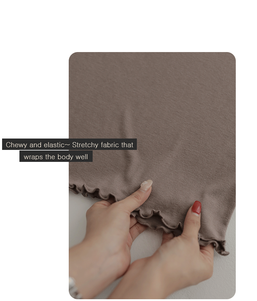 This is a basic piece with a lovely touch, highlighted by a subtle wave hemline. The shallow mock neck design offers warmth while preventing any feeling of tightness or discomfort.