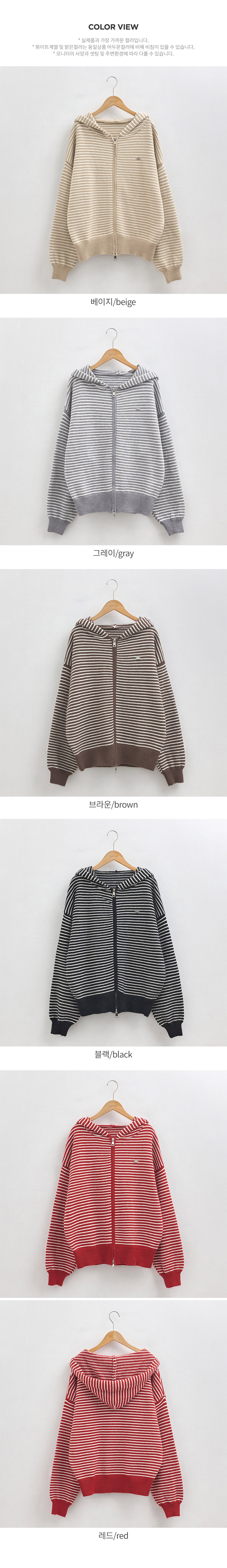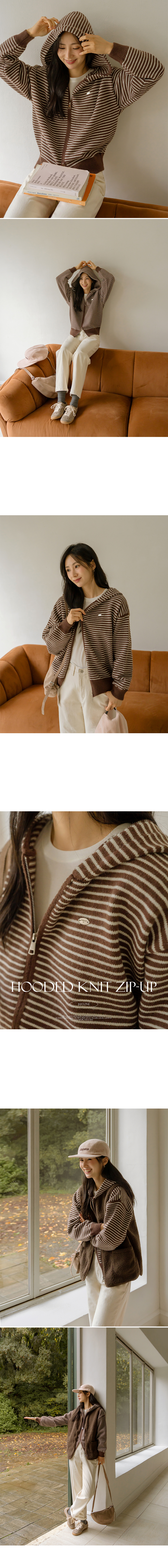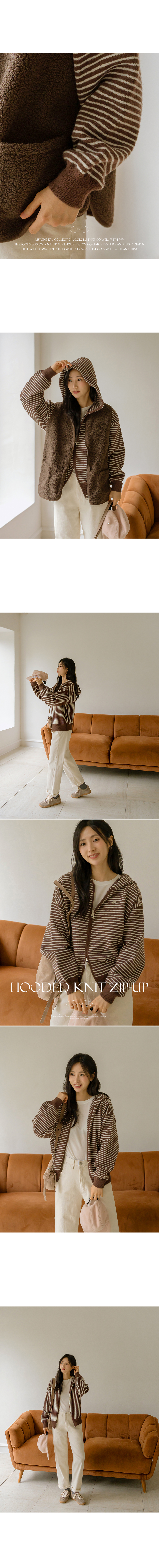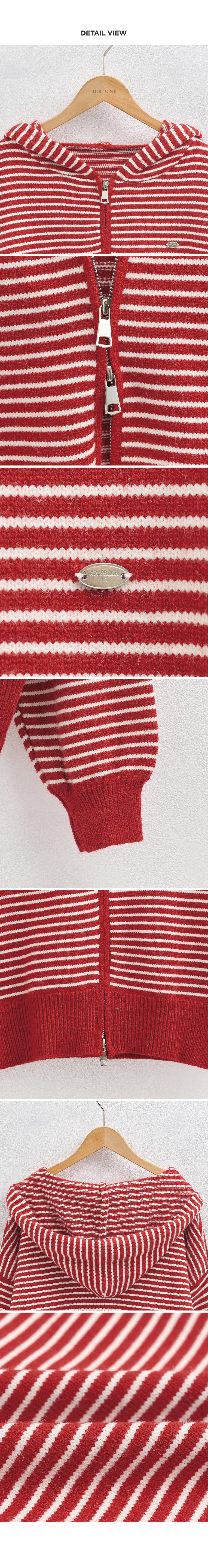 5DA32071CW_Silver Decoration Stripe Hooded Knit Zip-up